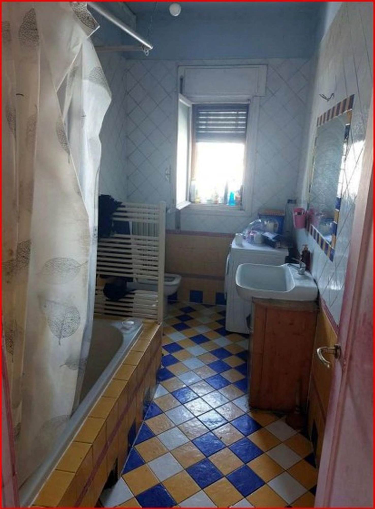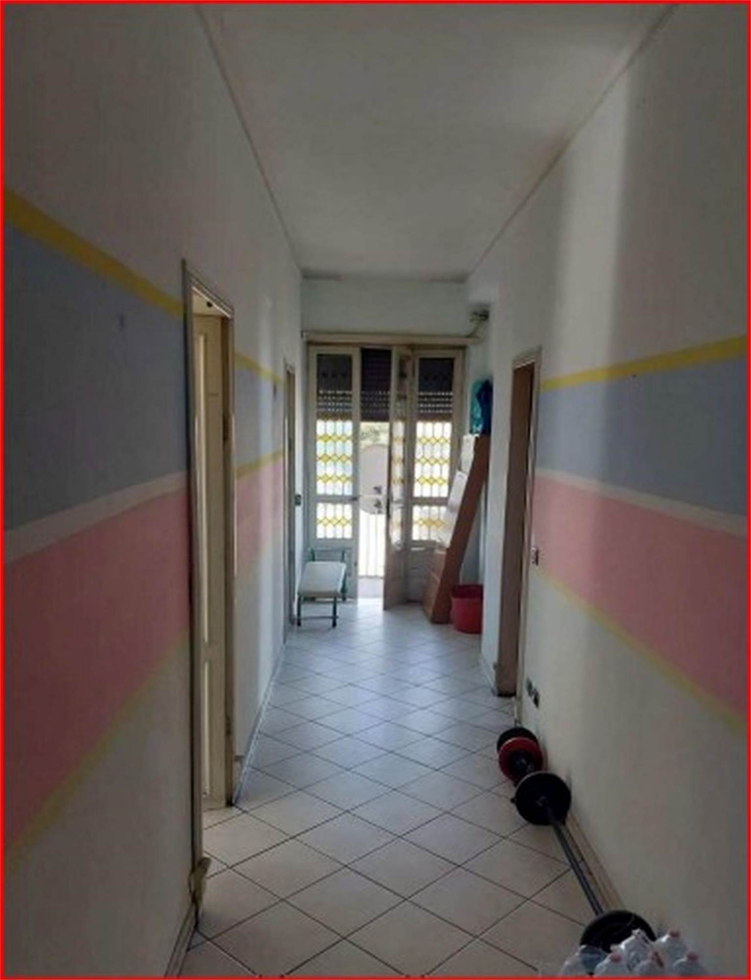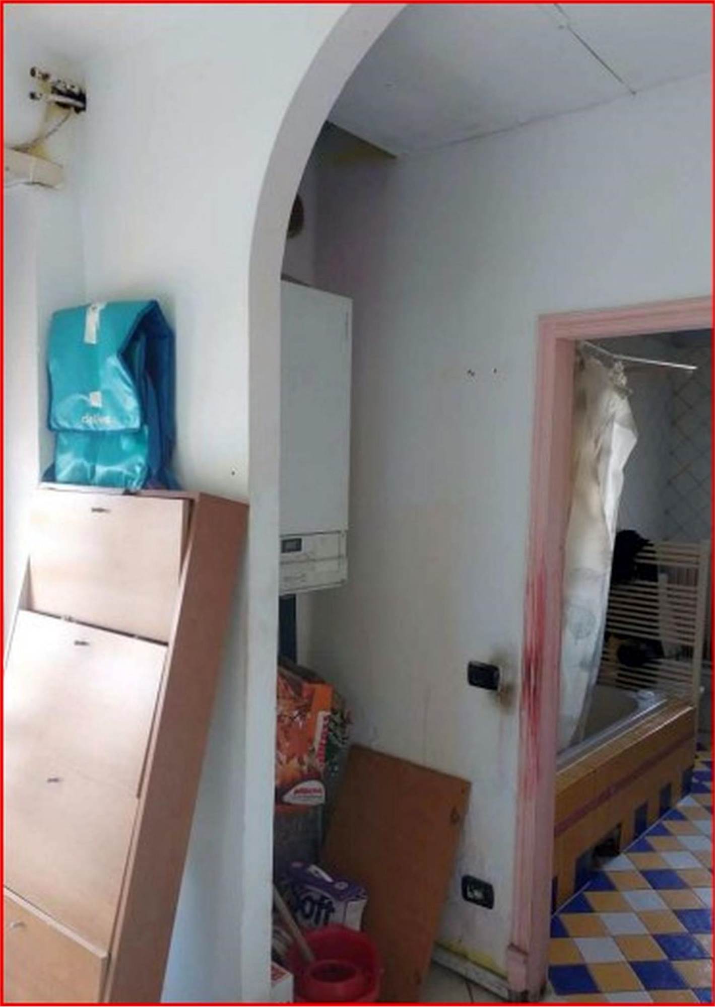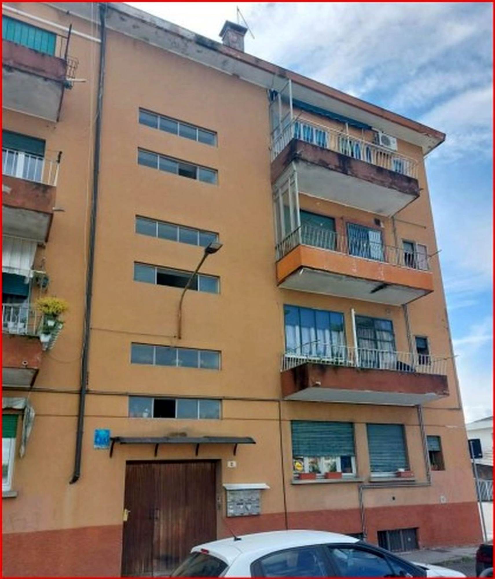 Trattasi di appartamento posto al piano secondo, raggiungibile da vano scala condominiale, privo di ascensore, costituito da soggiorno, cucina separata di modesta larghezza, bagno con antibagno, due ampie camere, corridoio di ingresso-distribuzione e tre terrazze, raggiungibili rispettivamente dal soggiorno, dal corridoio e da una delle due camere. Al piano seminterrato si trova una cantina di circa mq. 14,00.