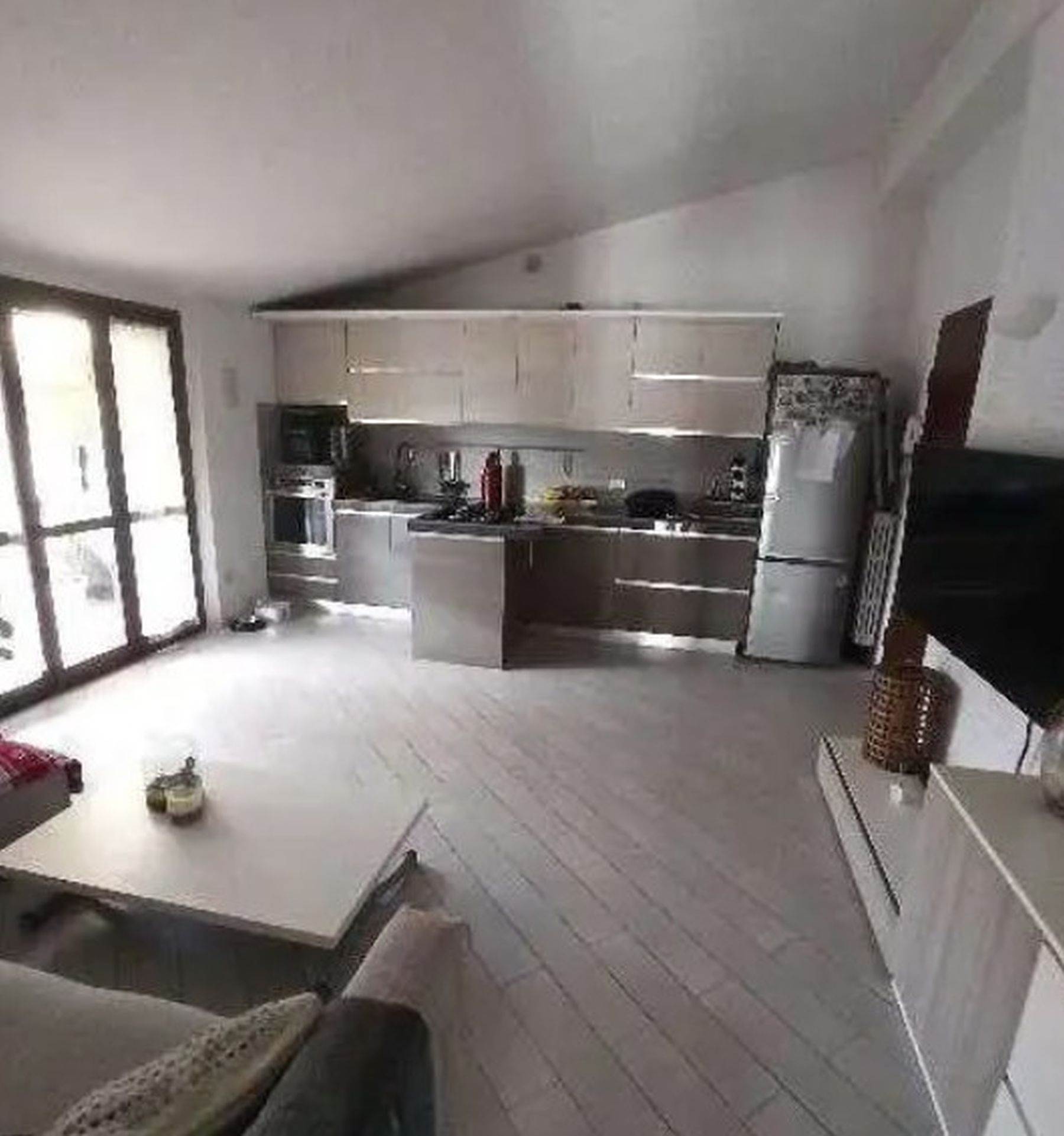 Descrizione sintetica: Trilocale di circa 90 mq con doppio affaccio, ubicato al terzo ed ultimo piano mansardato di complesso edilizio abitativo di n. 4 piani. È composto da ampio soggiorno dotato di zona cucina a vista e di affaccio su ampio balcone, disimpegno notte, due camere - la più grande delle quali dotata di balconcino - un bagno e autorimessa singola posta al piano interrato.