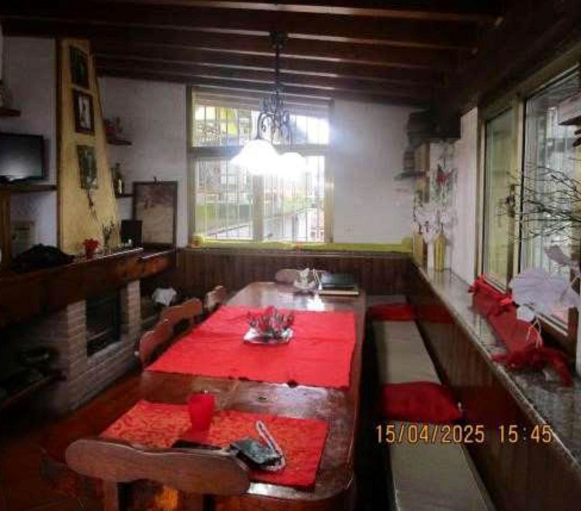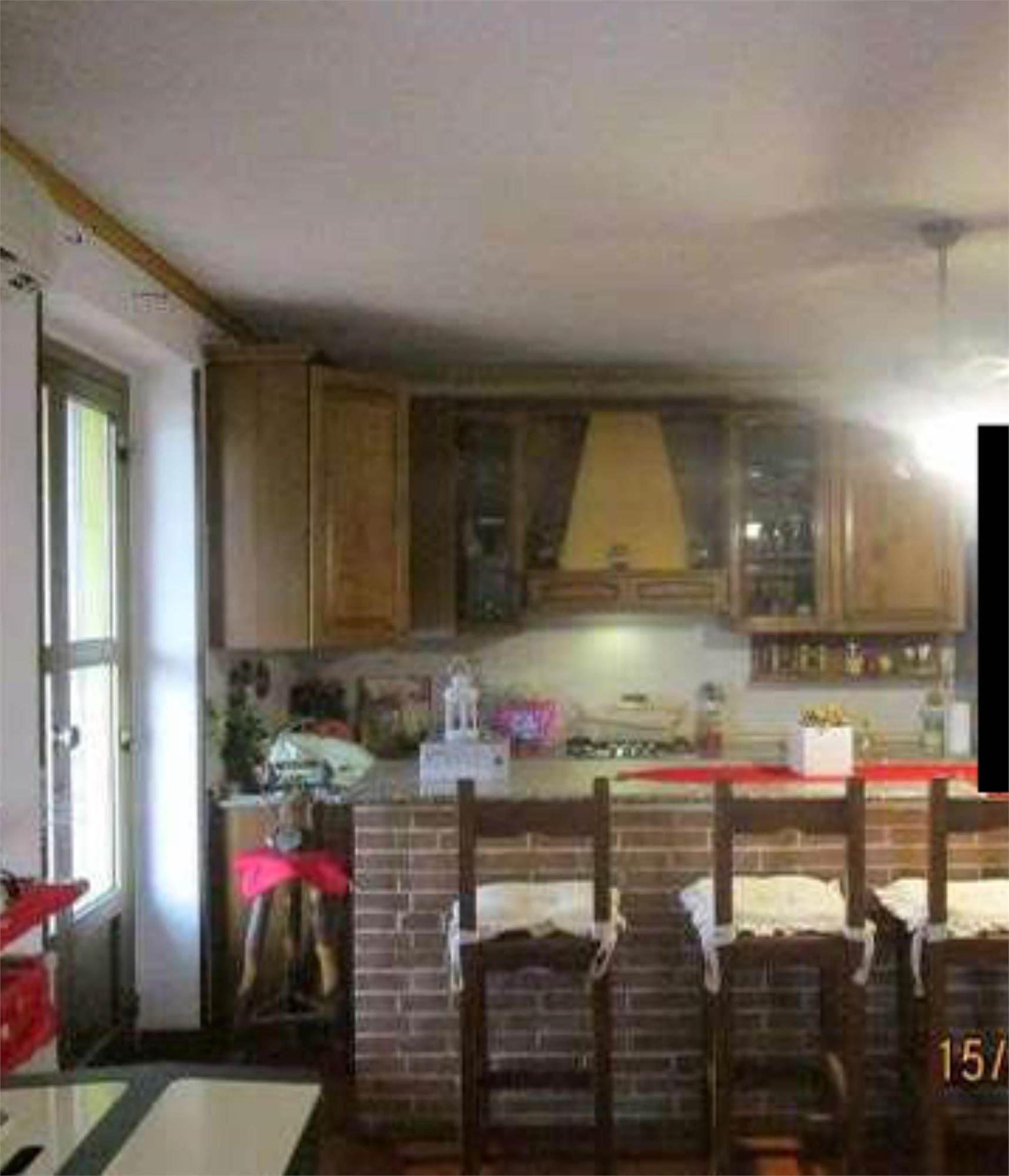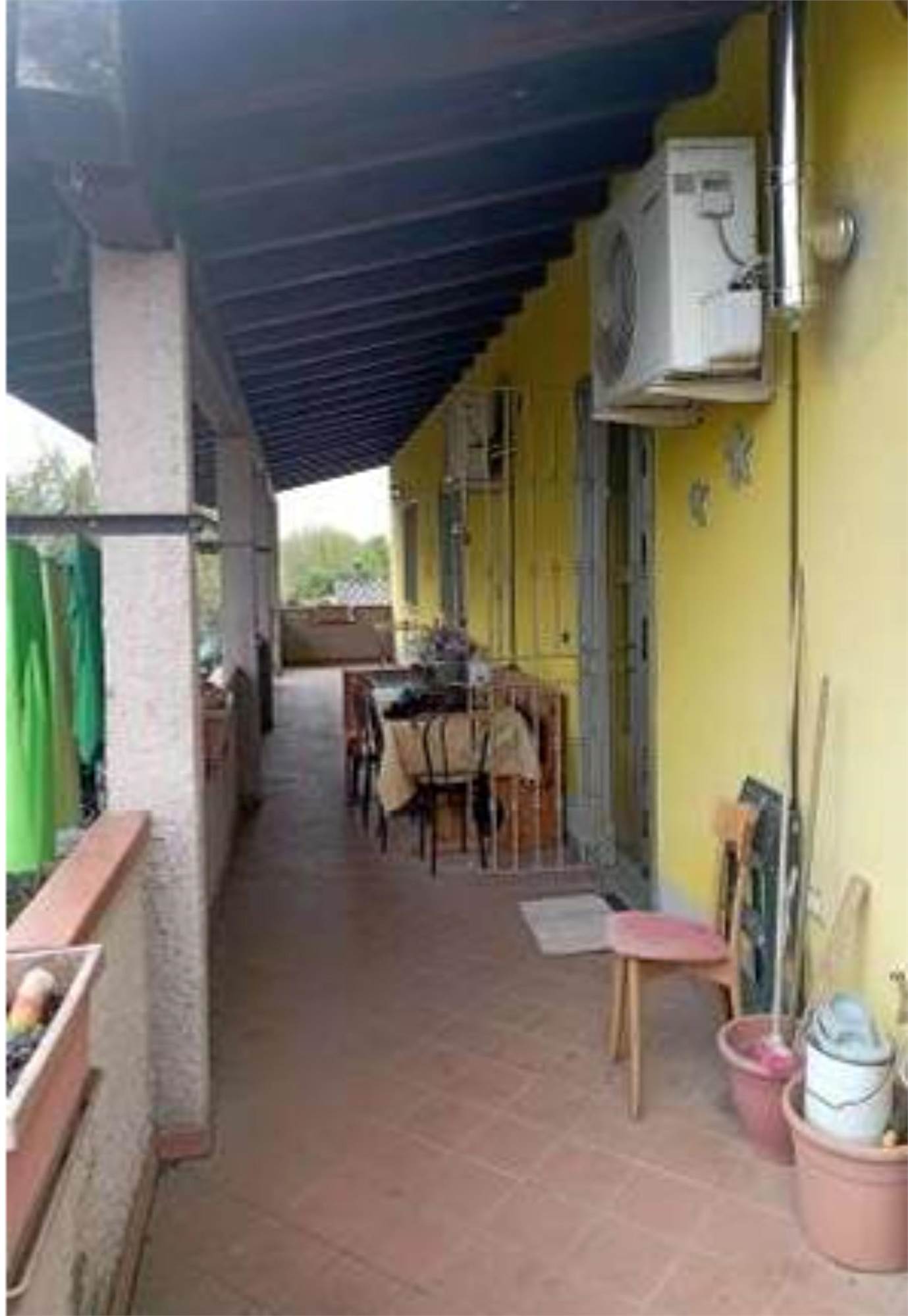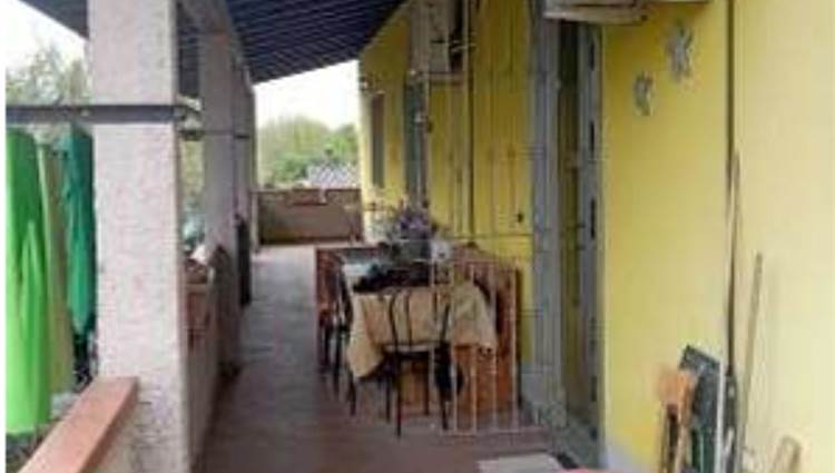 Appartamento al piano primo, composta da ingresso su soggiorno, cucina, ulteriore soggiorno sul lato est realizzato con chiusura di una veranda già esistente, disimpegno su due camere da letto e servizio igienico, oltre ad ampio salone sul lato nord nel quale è stato realizzato un piccolo locale ripostiglio; l'ingresso avviene tramite una scala esterna dal cortile che conduce al portico al piano primo, dal quale si accede direttamente al soggiorno cucina; è presente un ulteriore ingresso sul lato nord.