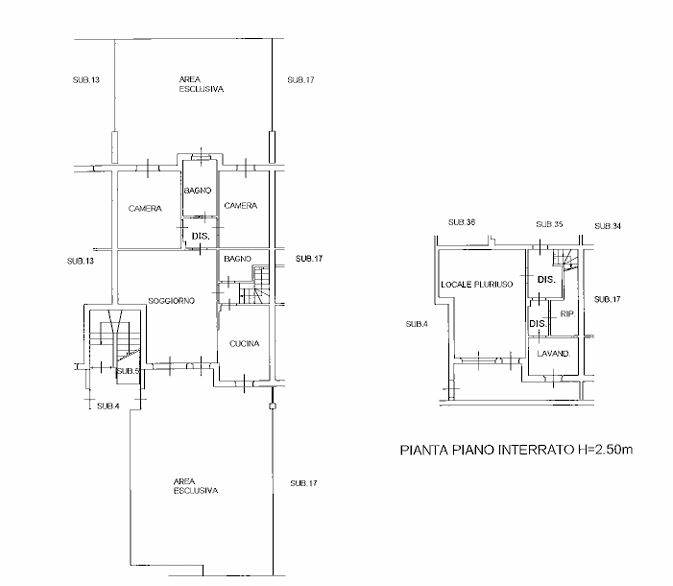 Descrizione sintetica: Appartamento al piano terra, composto da ingresso, cucina, soggiorno, due camere, due bagni e disimpegno, con annesse due aree esclusive (una antistante ed una retrostante) di mq 132,00 ed i pertinenziali locali accessori posti al piano interrato, composti da locale pluriuso, lavanderia, due disimpegni, ripostiglio ed intercapedine, collegati al soprastante appartamento mediante scala interna esclusiva. Box auto di mq 26,00.
