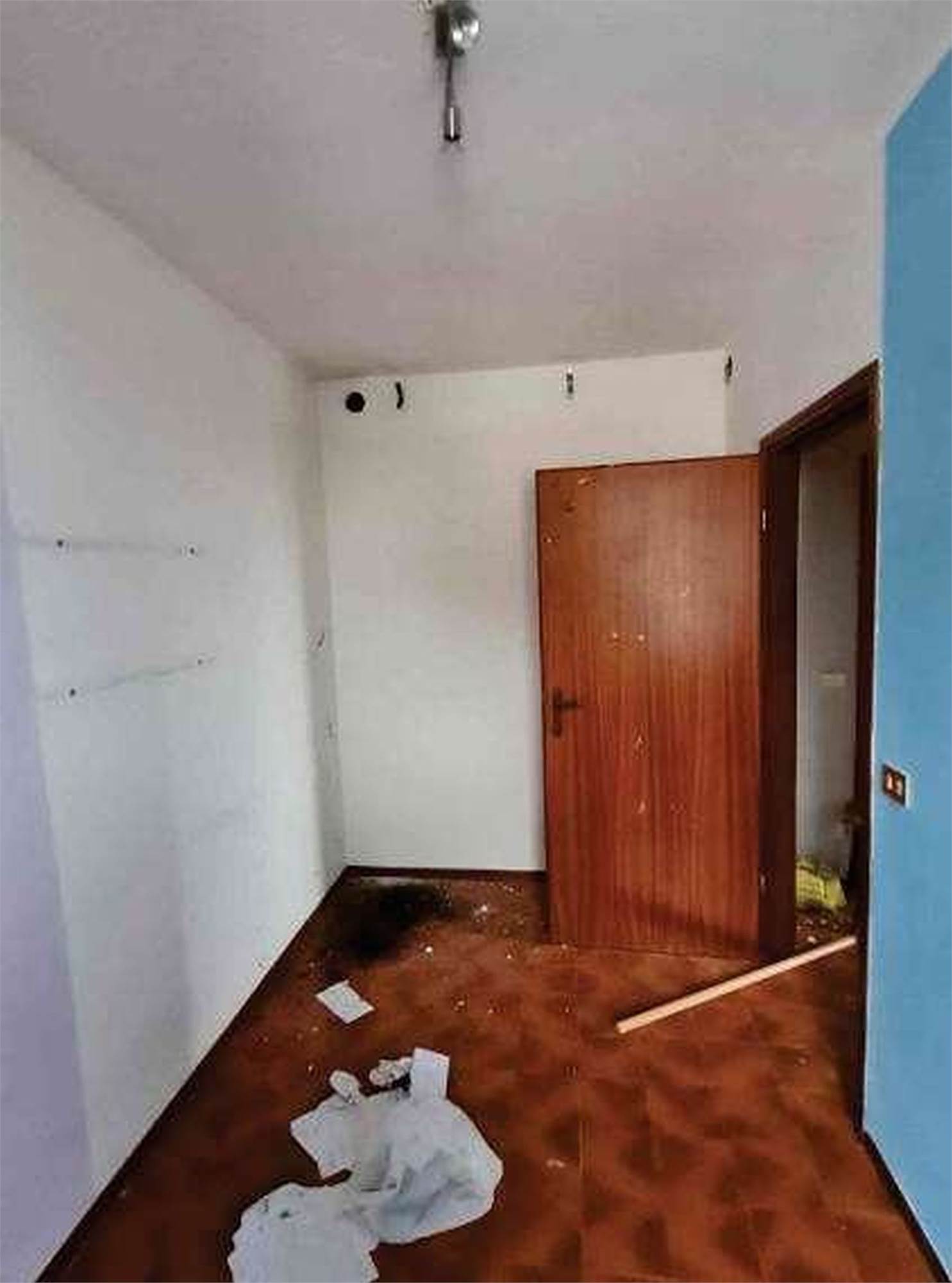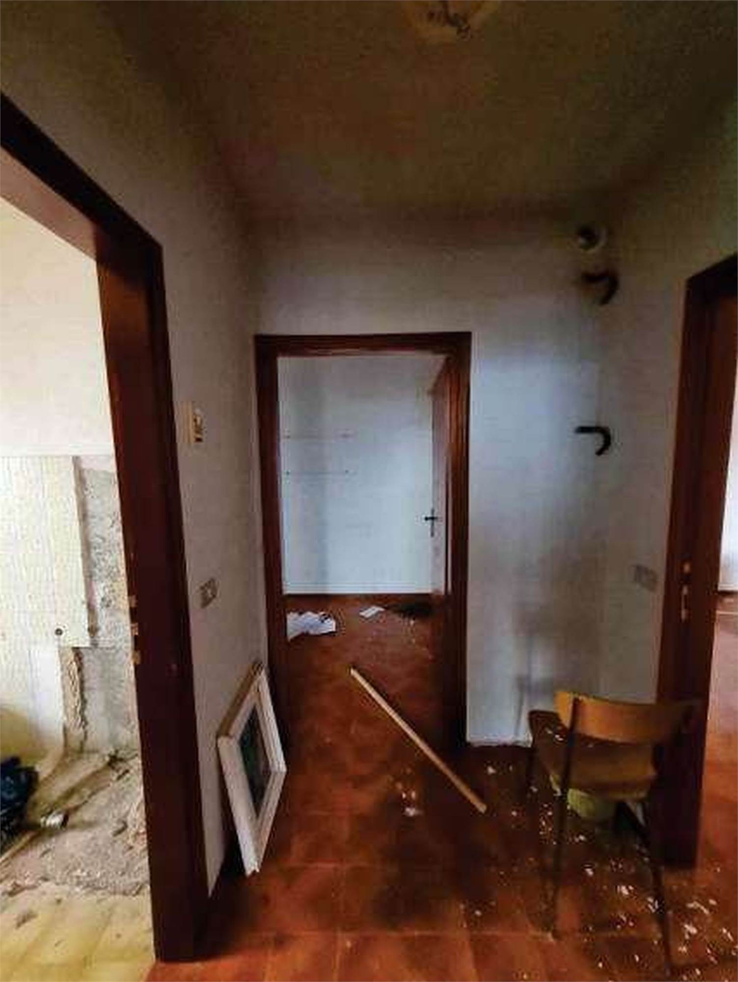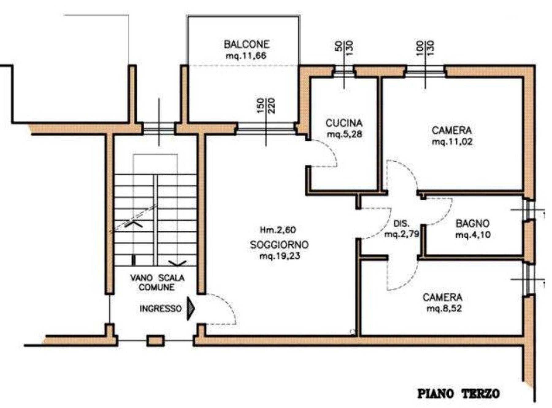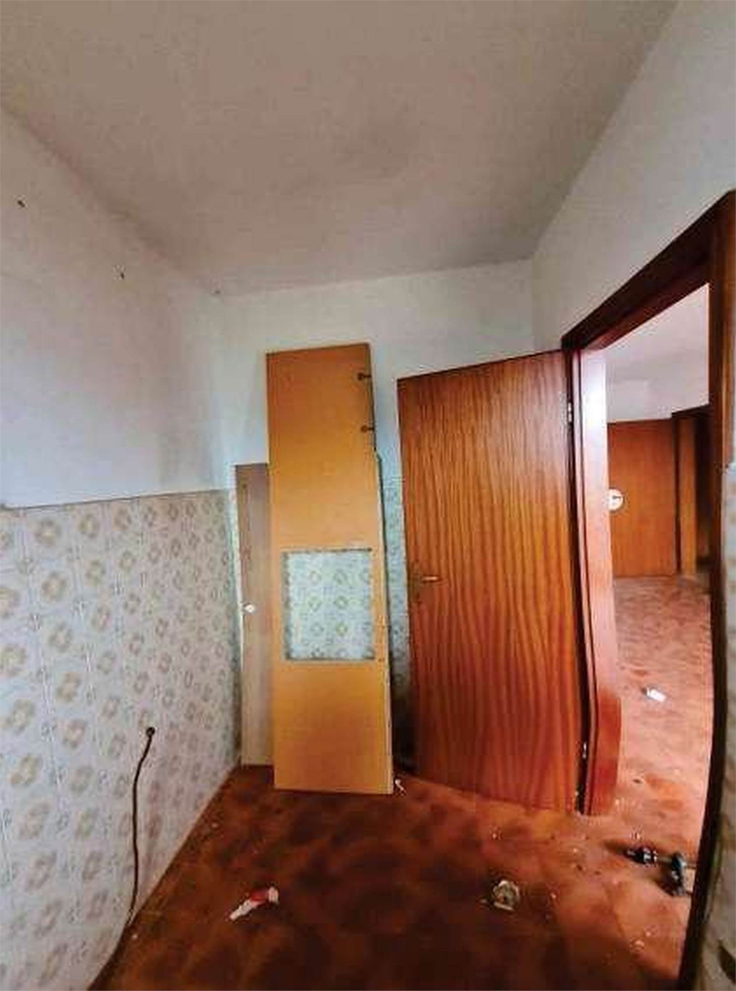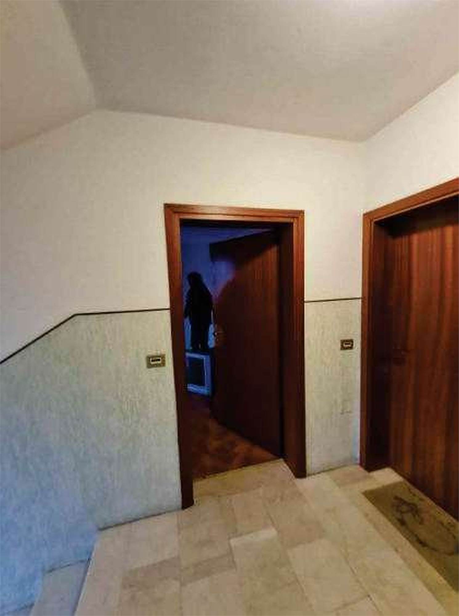 Descrizione sintetica: Appartamento di 68 mq posto al terzo piano con box di 13 mq al piano terra. È composto da ingresso-soggiorno, cucina, disimpegno, due camere, bagno, un balcone e il solaio del sottotetto. Per il riscaldamento si segnala solo la presenza di caloriferi, in parte a moduli in ghisa verniciati e in parte in corpi radianti in alluminio, distribuiti nei vari locali, con la mancanza della caldaia murale a gas metano di tipo autonomo e/o il boiler per la produzione di acqua calda sanitaria.