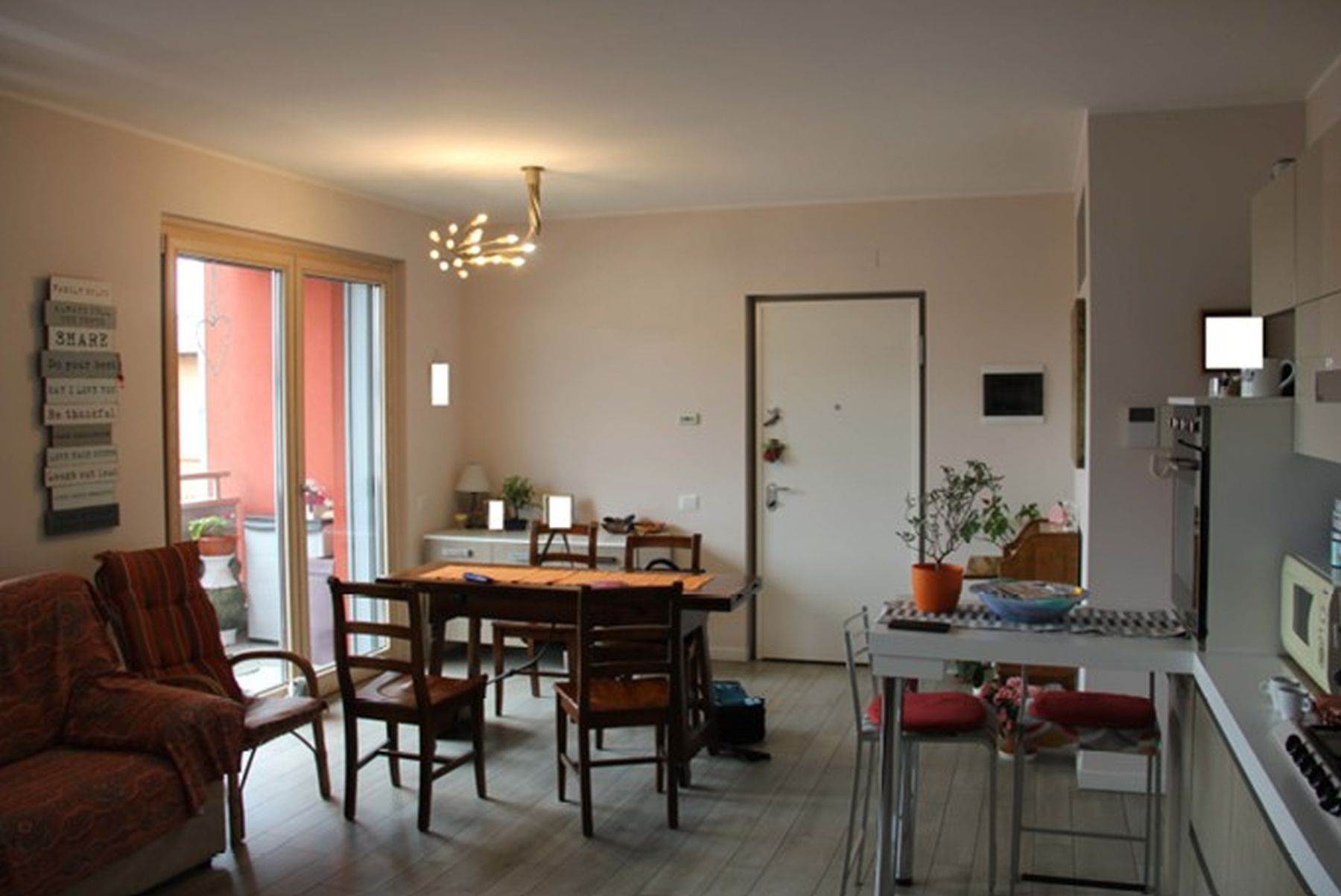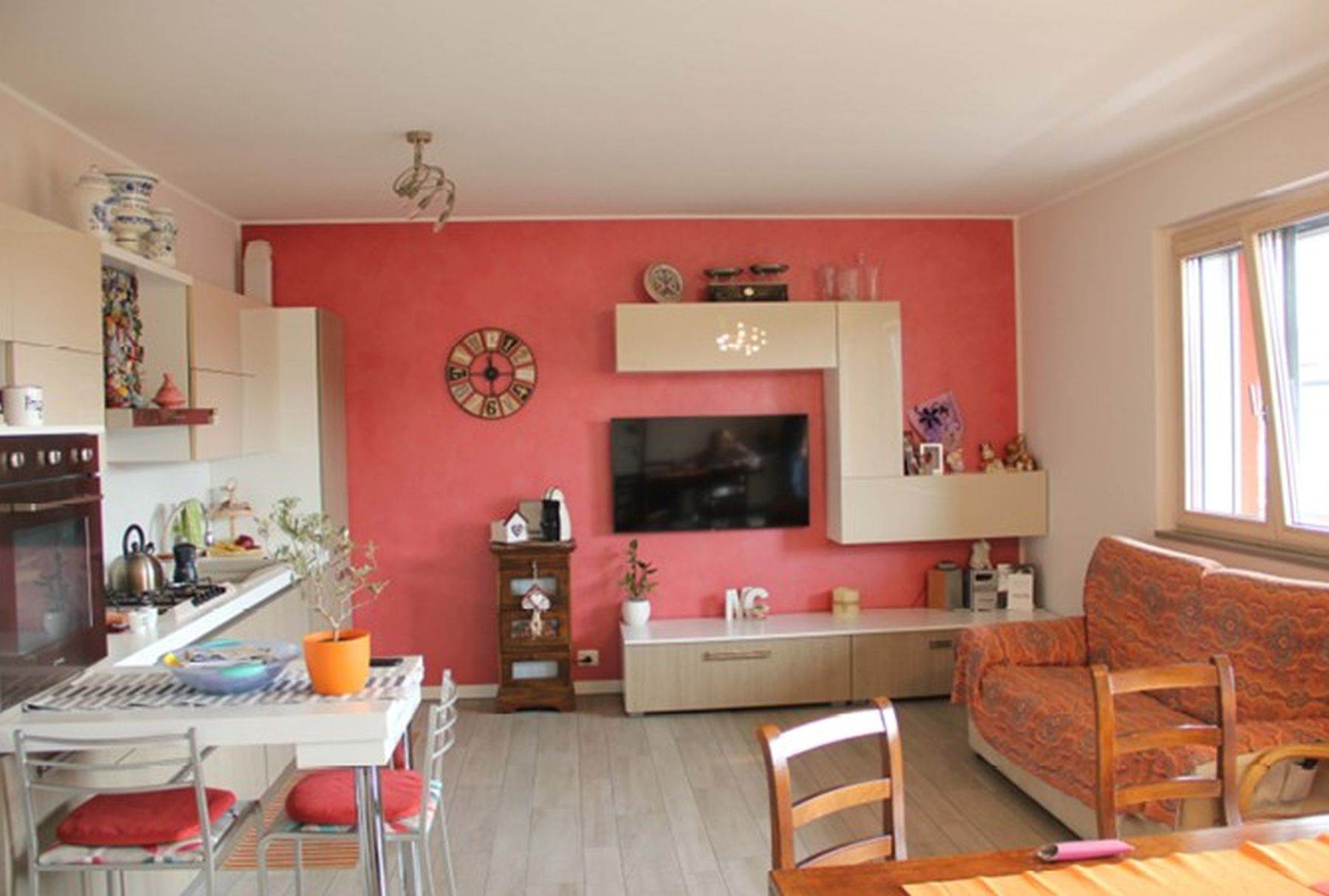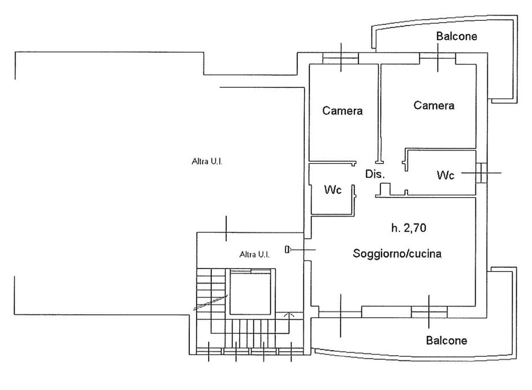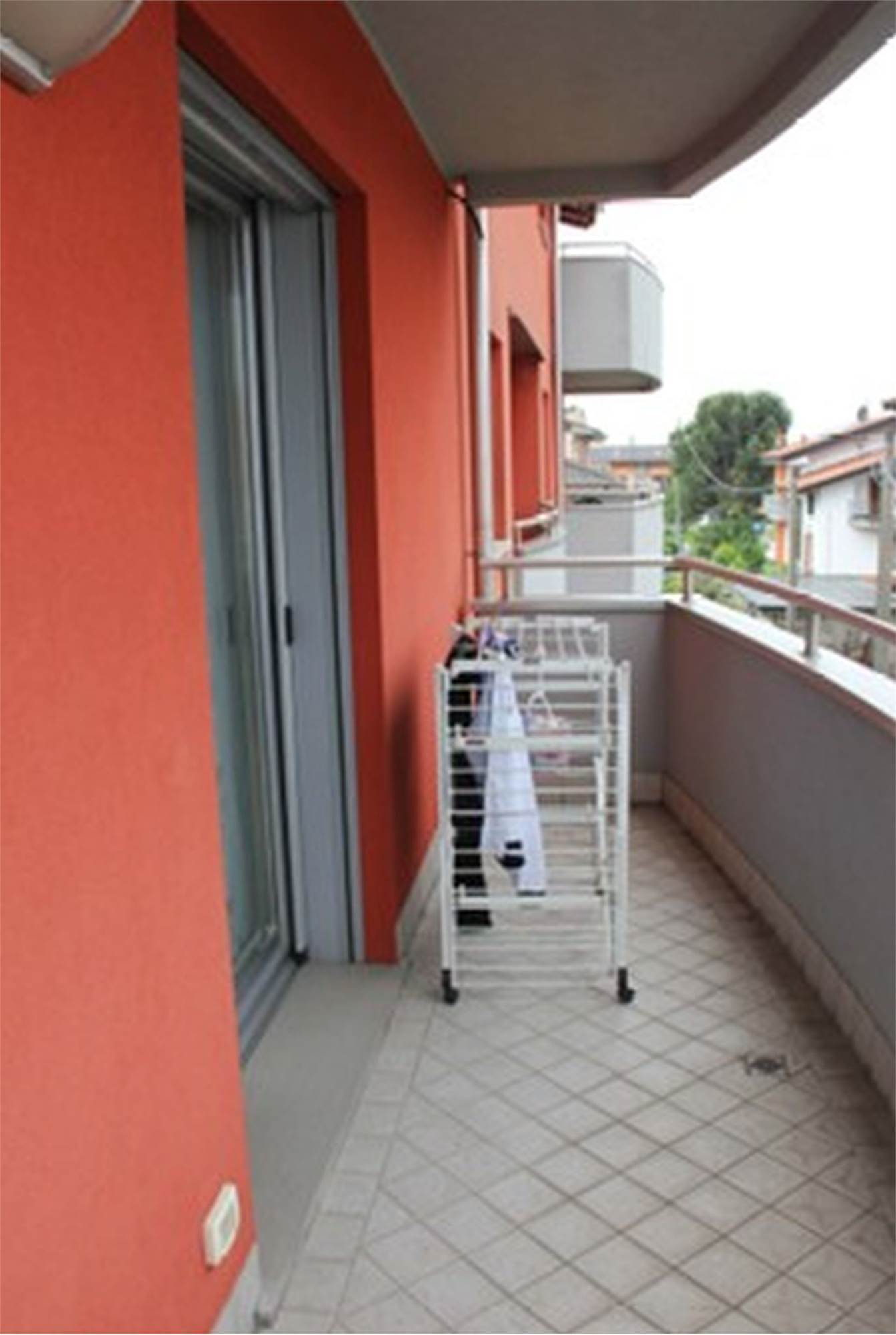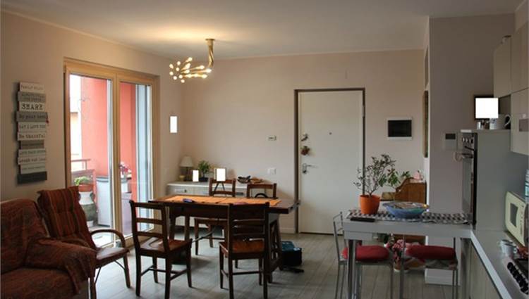 Descrizione sintetica: Appartamento con superficie complessiva di 94 mq posto al secondo piano di un complesso condominiale completo di autorimessa di 27 mq e composto da soggiorno e cucina in open space, due bagni e due camere da letto ed un disimpegno. Sono presenti due balconi, uno con accesso sul soggiorno mentre il secondo con accesso sulla camera da letto.