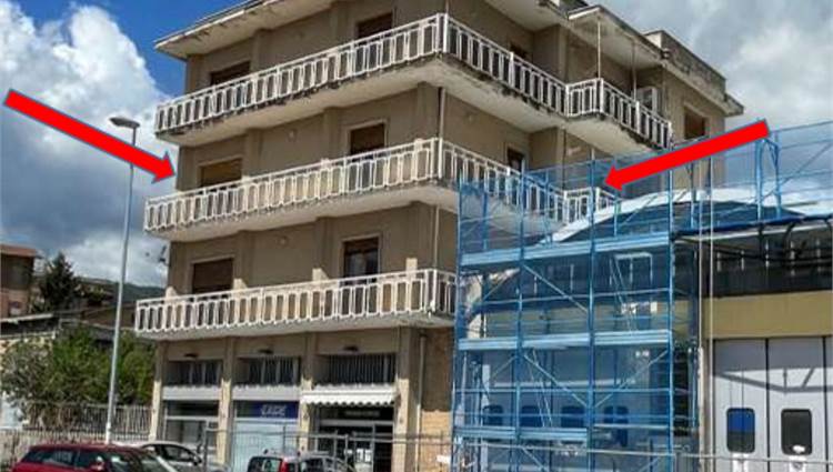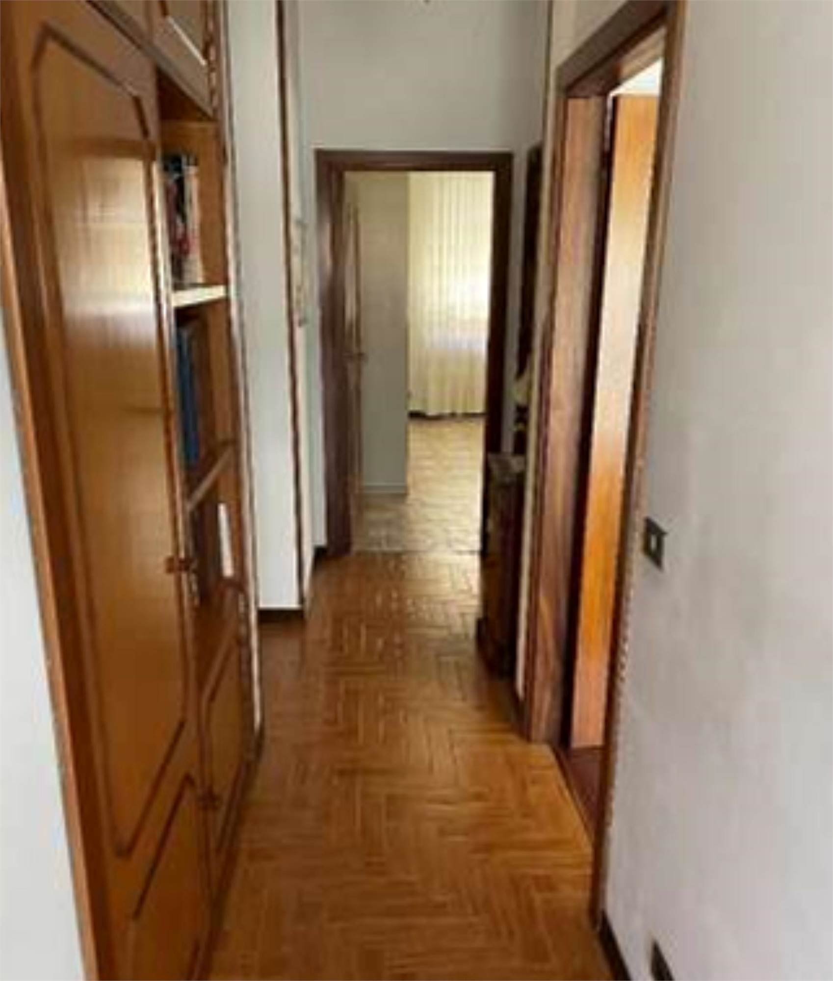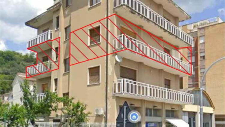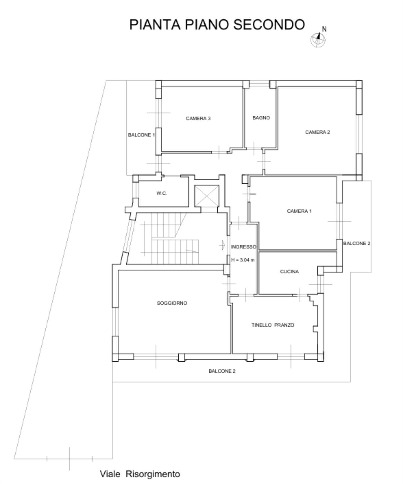 Appartamento posto al piano secondo di un edificio di quattro piani fuori terra e si compone di ingresso soggiorno, cucina, tre camere, due bagni, due balconi, uno esposto ad ovest ed uno a sud-est, e locale fondaco di mq 7,40 al piano terrazzo di copertura.