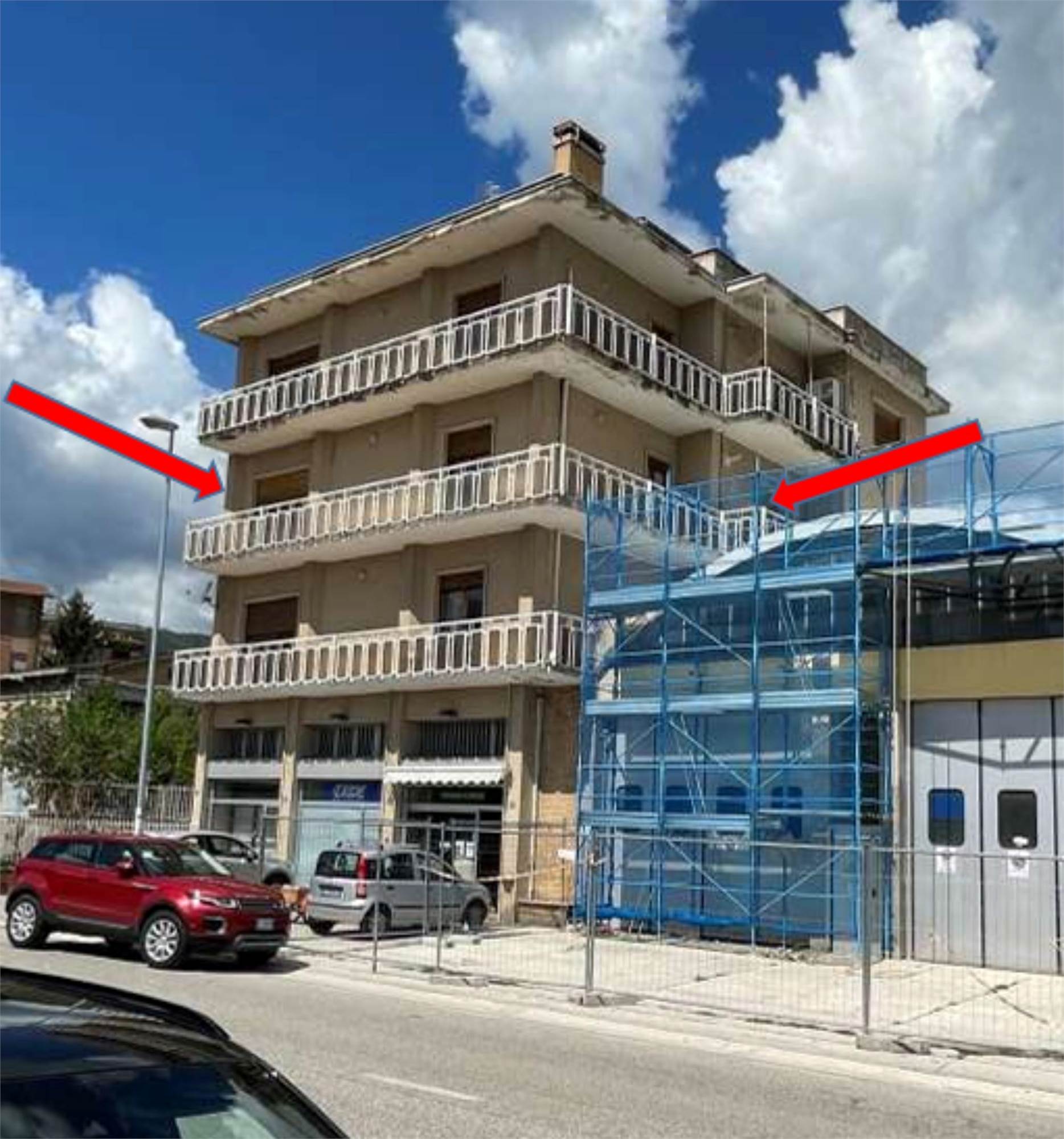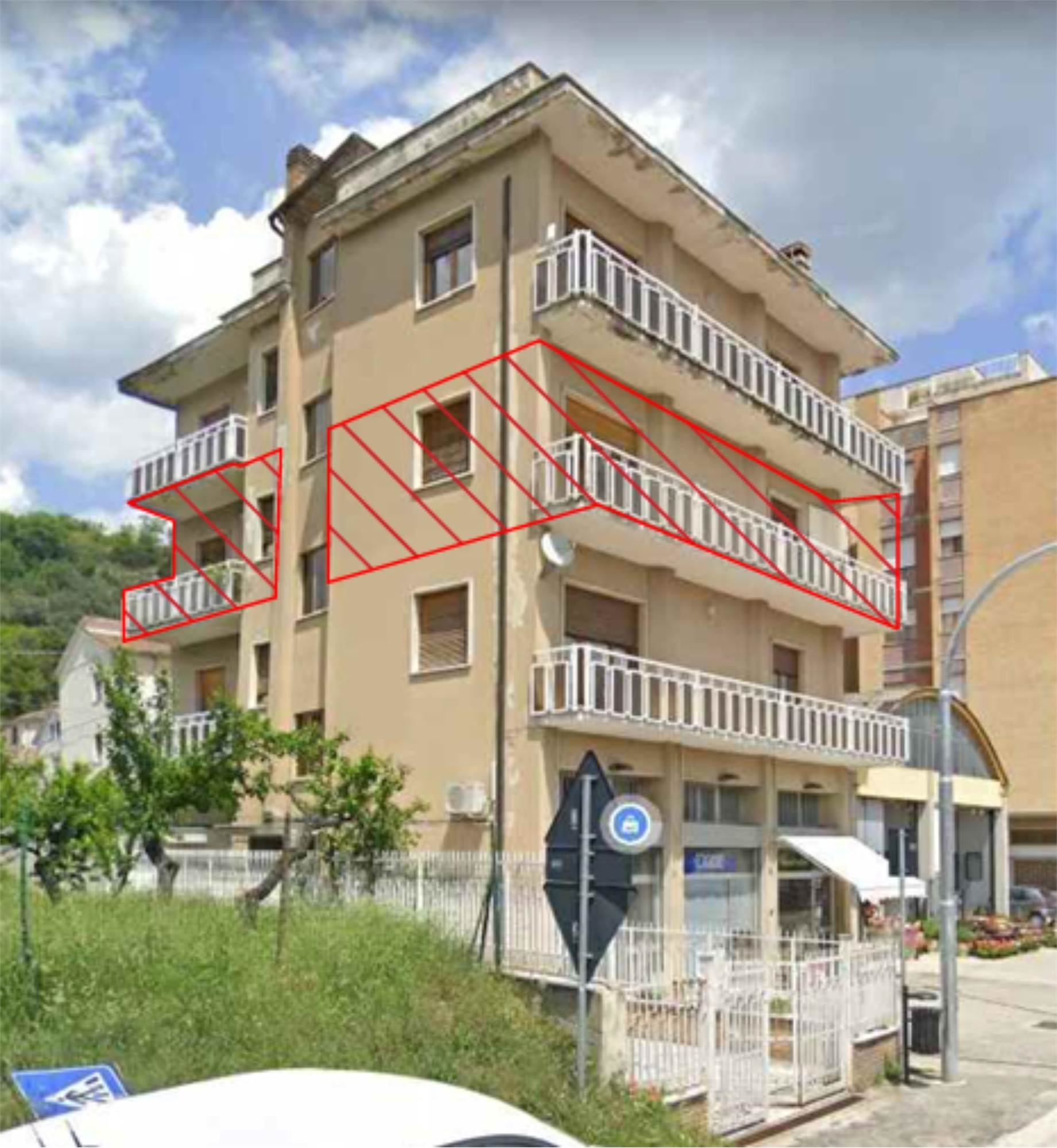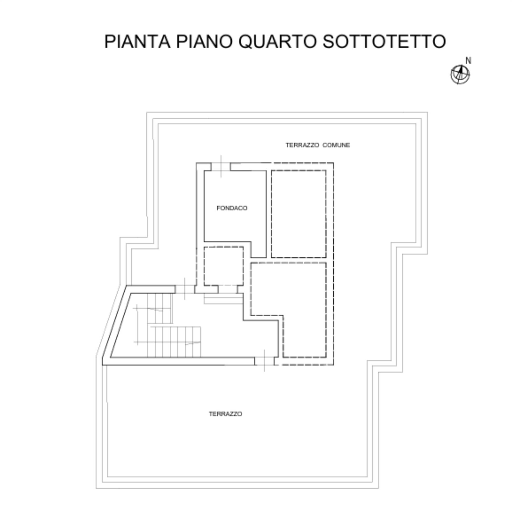 Appartamento posto al piano secondo di un edificio di quattro piani fuori terra e si compone di ingresso soggiorno, cucina, tre camere, due bagni, due balconi, uno esposto ad ovest ed uno a sud-est, e locale fondaco di mq 7,40 al piano terrazzo di copertura.