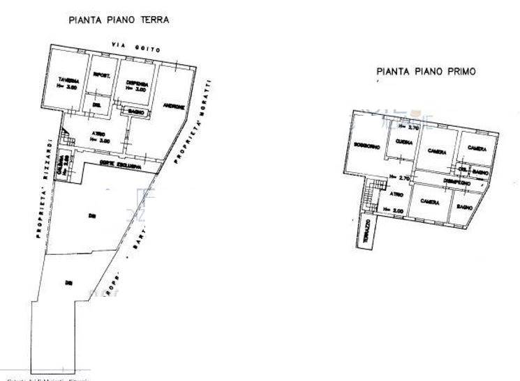 Descrizione sintetica: Abitazione ai piani terra e primo, con corte e androne esclusivi composta da deposito, ripostiglio e taverna al piano terra, da soggiorno, cucina, tre camere, due bagni e terrazza al piano primo.