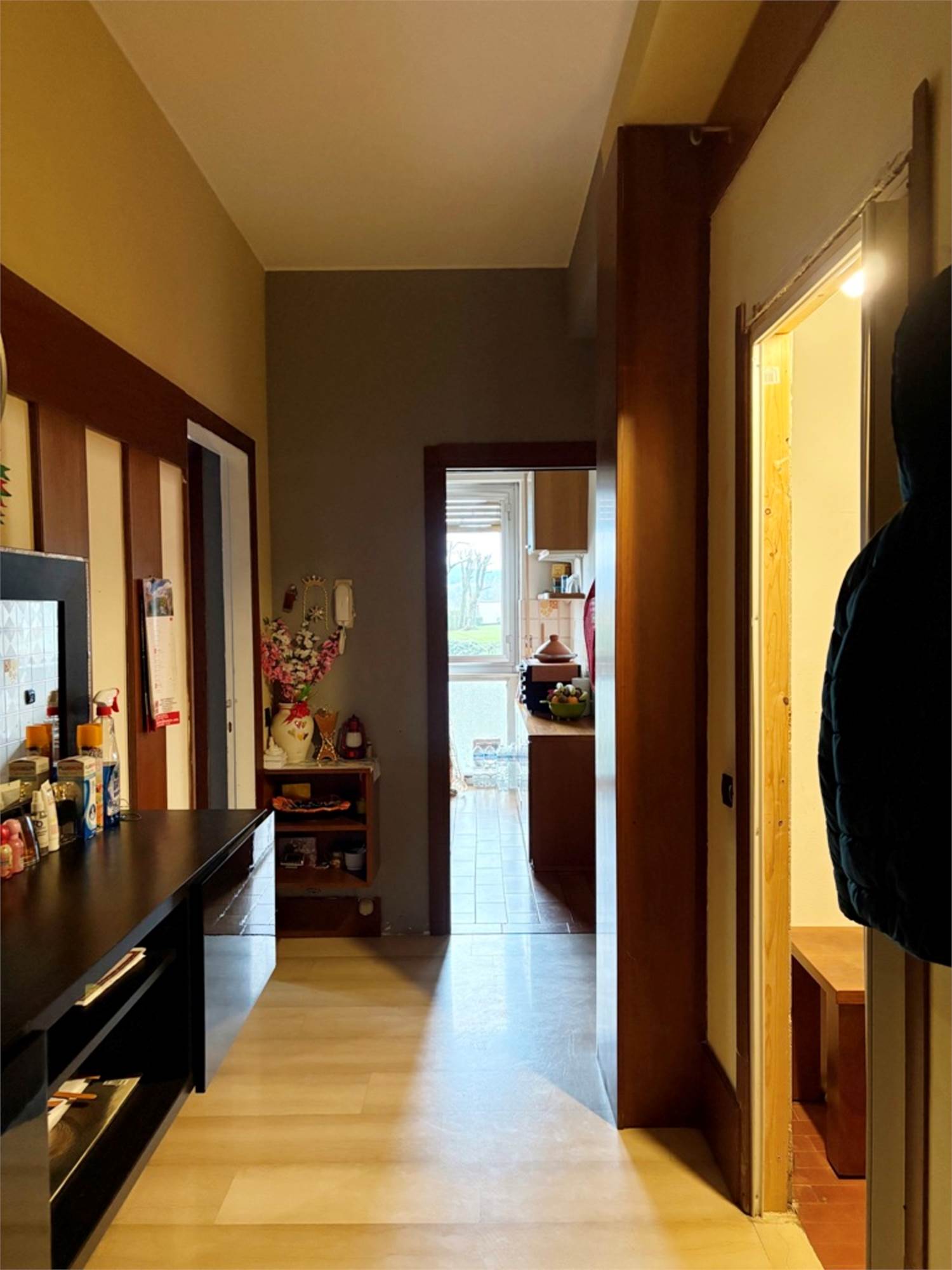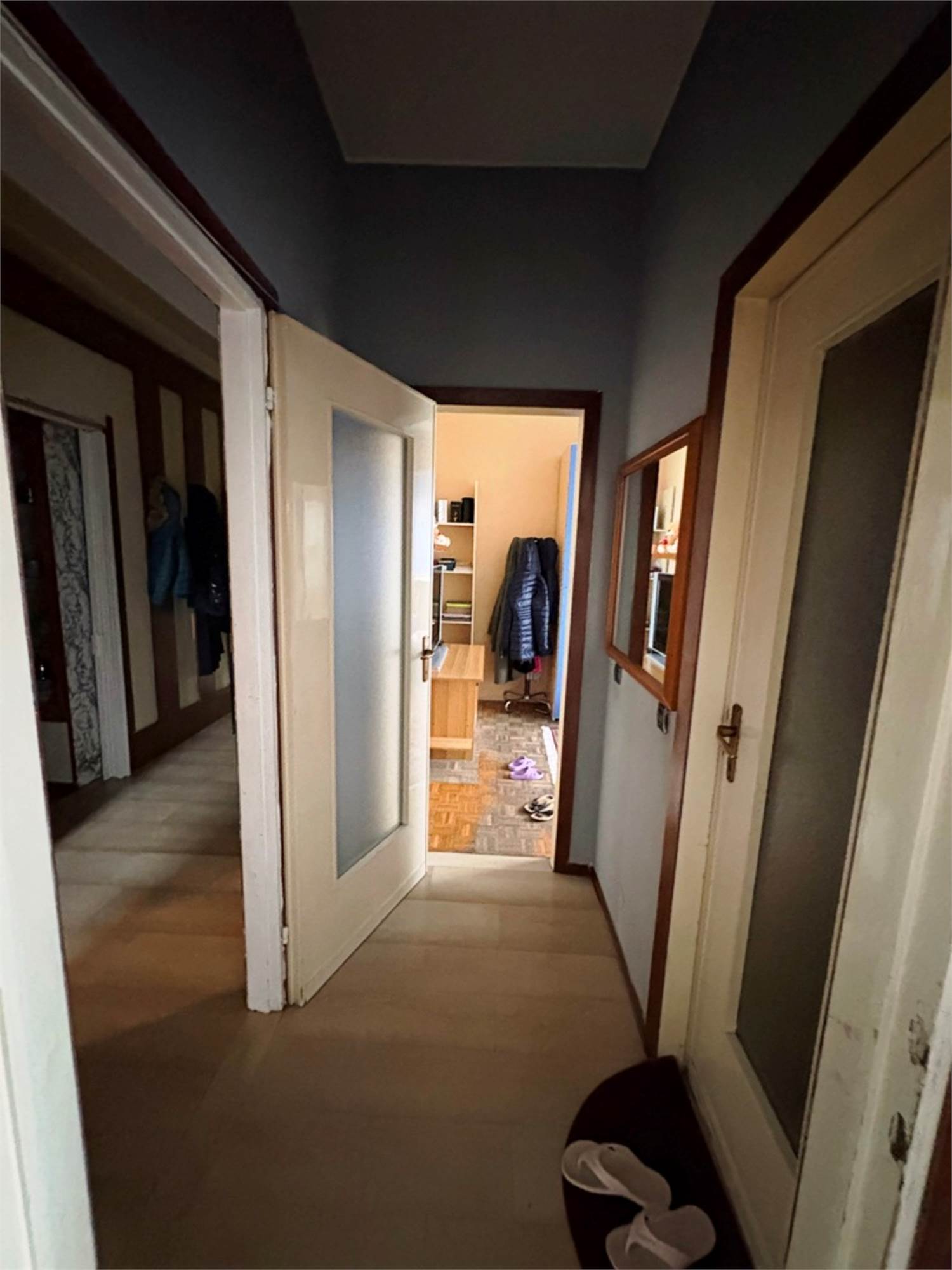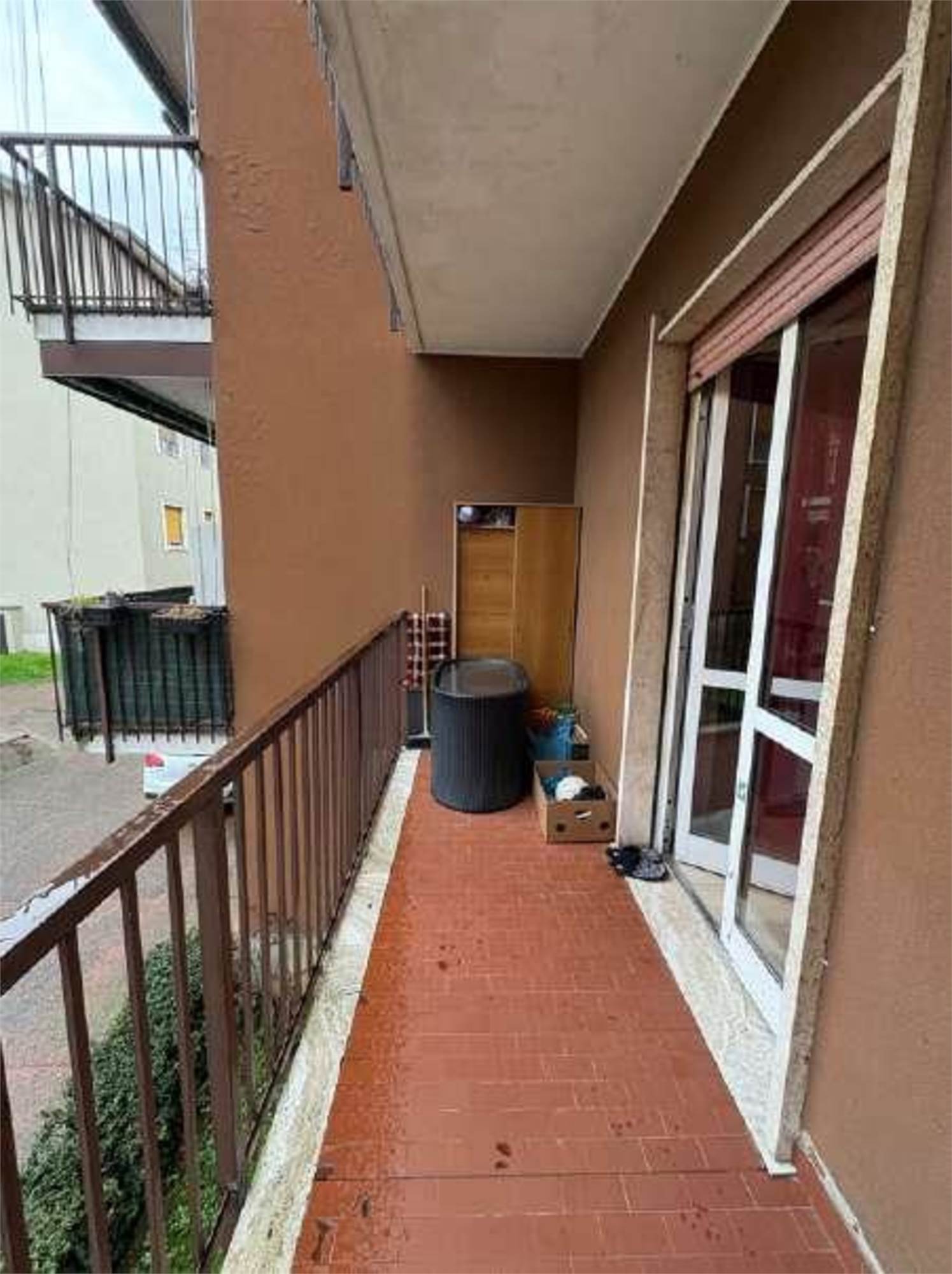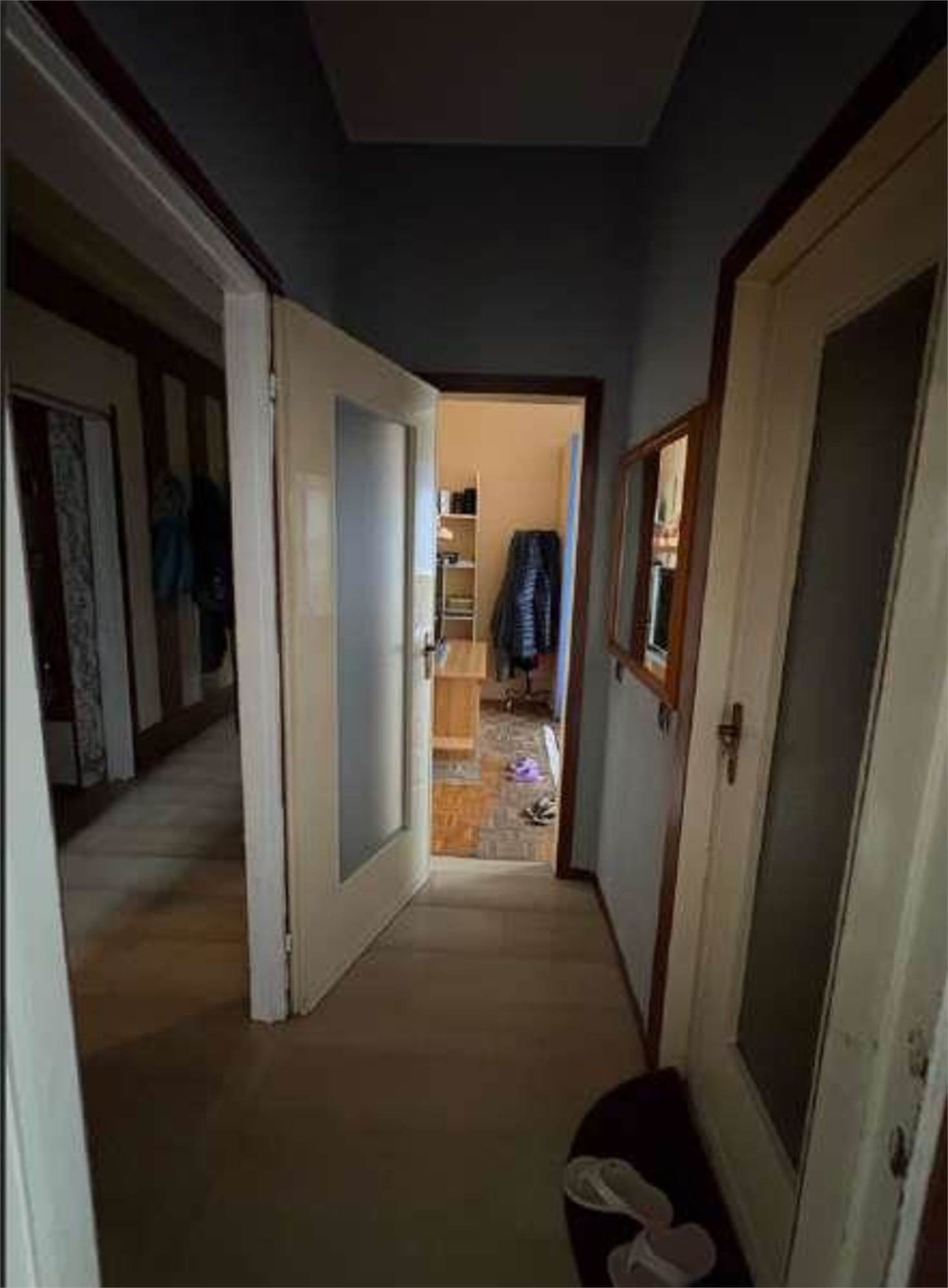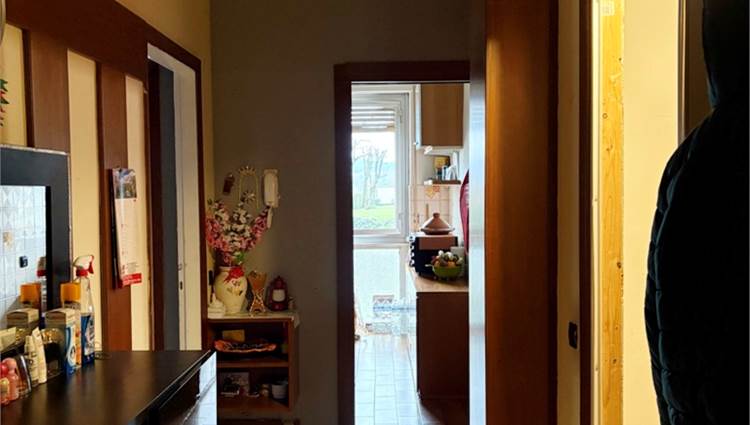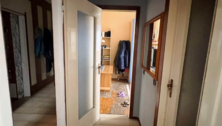 Descrizione sintetica: Appartamento al piano primo composto da soggiorno, cucina, due camere e bagno, oltre a balcone di mq 4,00, cantina di mq 10,00 e box auto di mq 18,00.