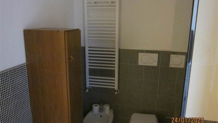 Descrizione sintetica: Appartamento di 63 mq con autorimessa di 14 mq e cantina. È posto al piano terra e composto da due locali, bagno e area di pertinenza esclusiva. L’impianto di riscaldamento è a pavimento, centralizzato a gas metano. Risulta locato a terzi