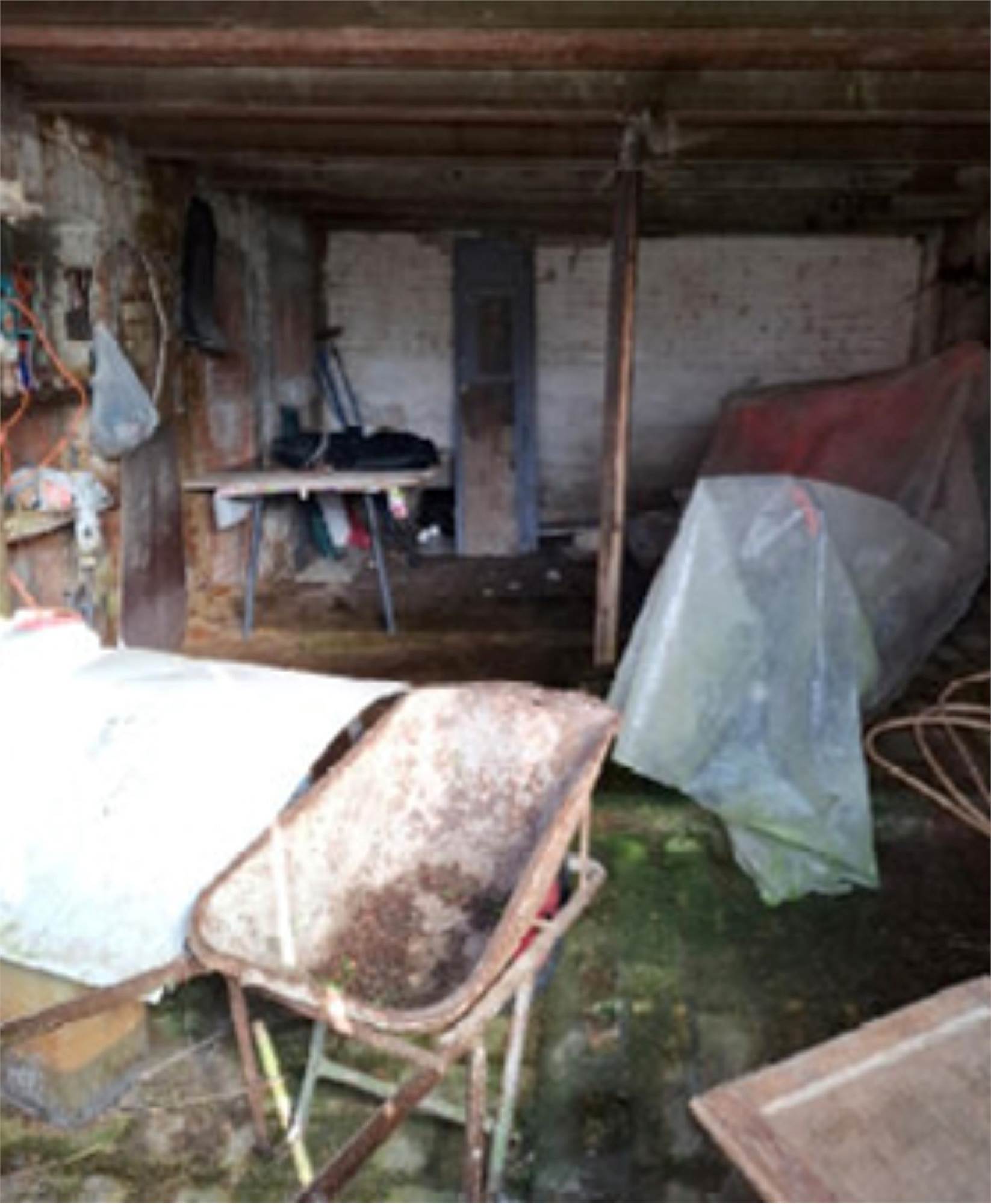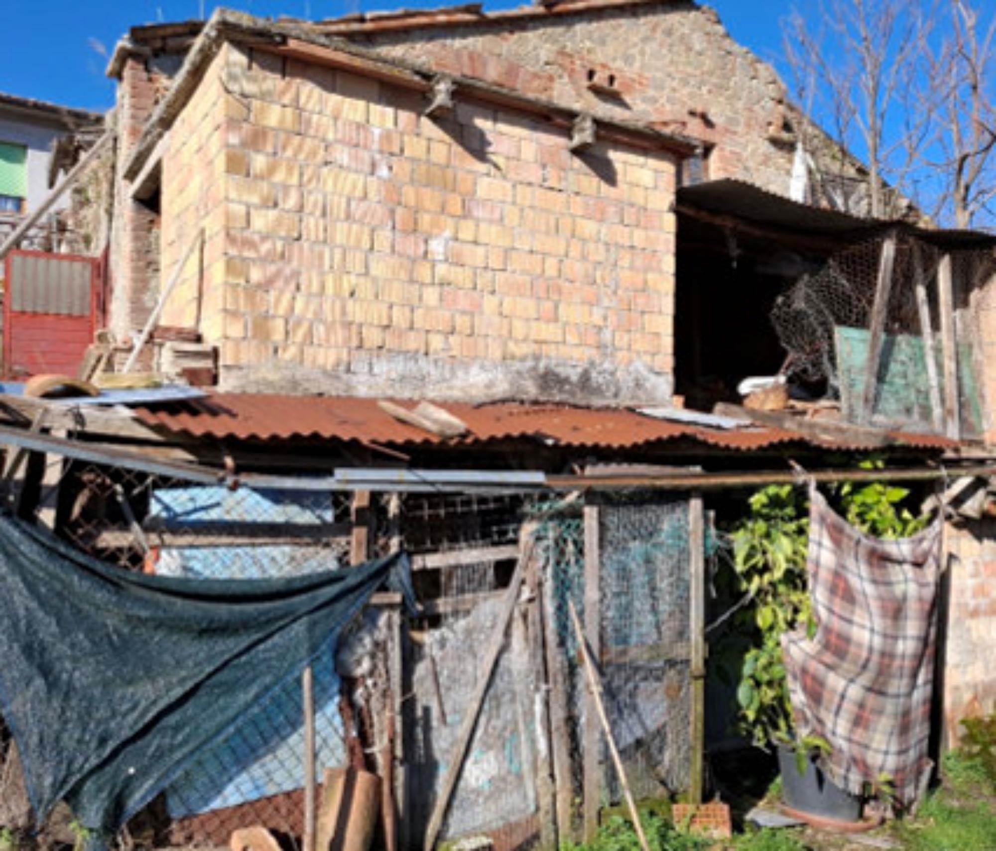 disimpegno, una camera e un bagno. Sul pianerottolo di ingresso è presente un ripostiglio sottoscala con accesso indipendente. Nella corte esterna sono ubicati degli accessori inagibili, consistenti in un magazzino diroccato suddiviso in più vani.