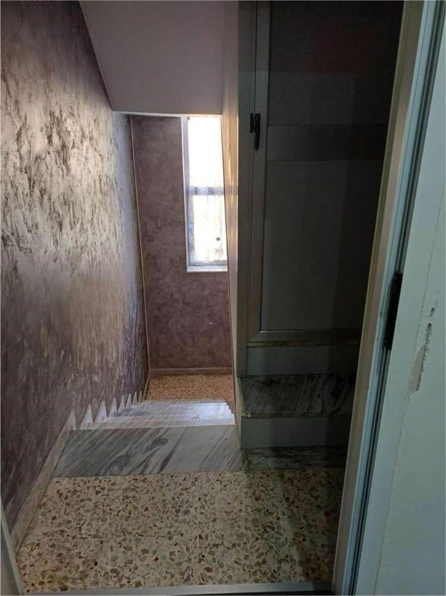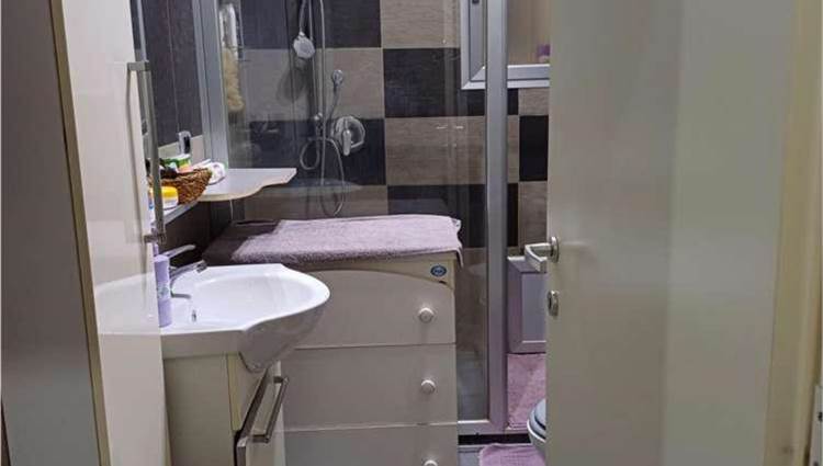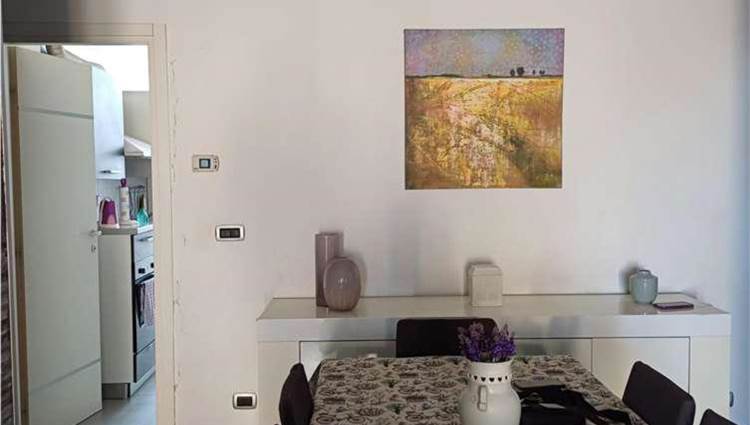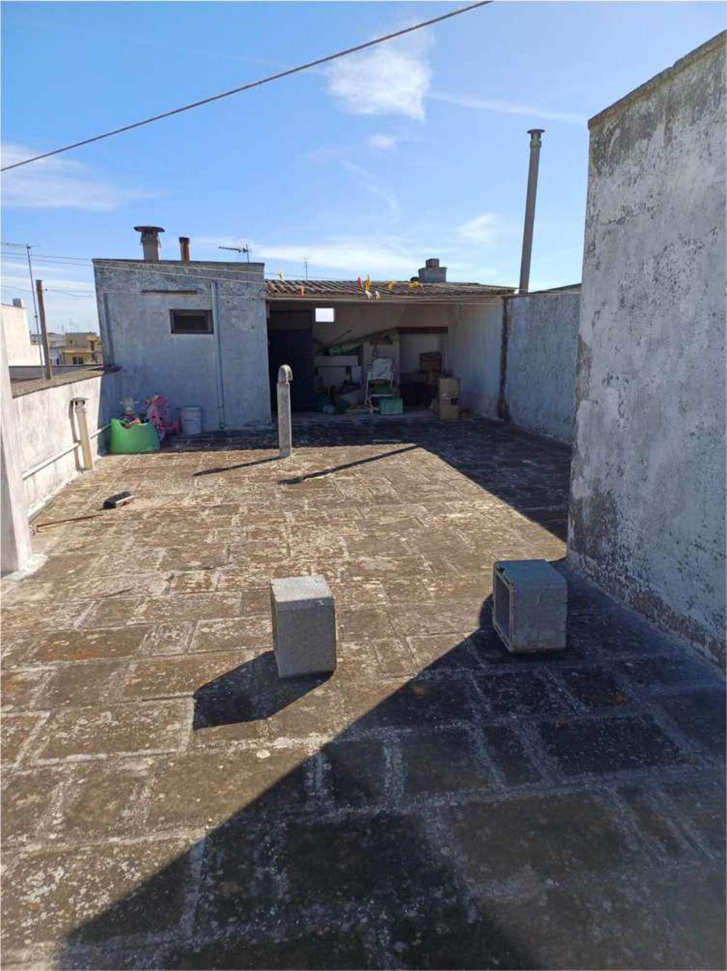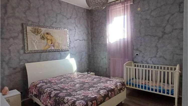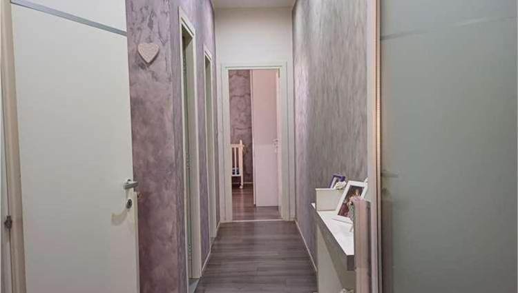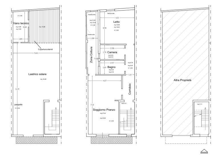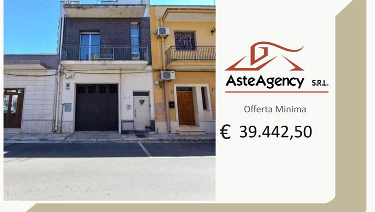 Descrizione sintetica: Appartamento al piano primo composto da un ingresso con un lungo corridoio e due camere, un bagno ed un soggiorno-pranzo con affaccio da balcone di mq 4,26 su prospetto principale. La zona cottura, collegata al soggiorno, è ricavata su di una veranda chiusa con finestre alte. Mediante altre due rampe di scale, si accede al lastrico solare di mq 54,80 dove vi è un vano tecnico nel quale è allocata la caldaia.