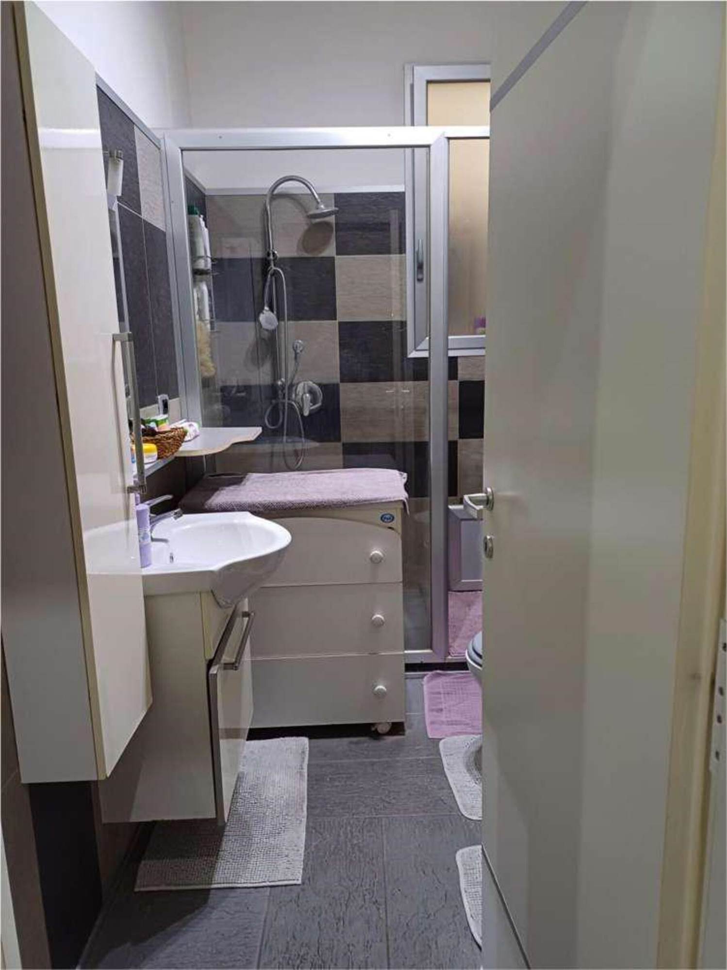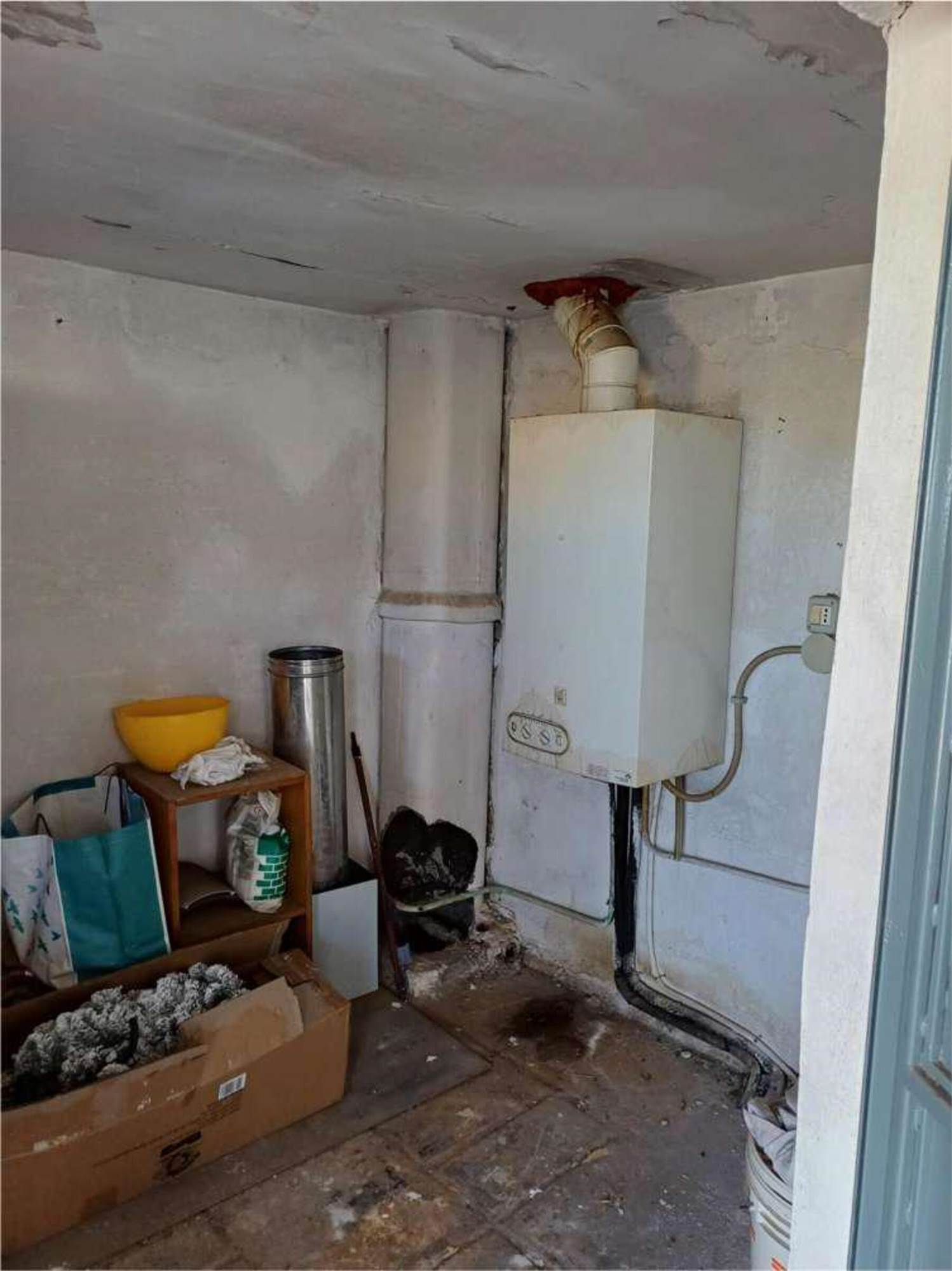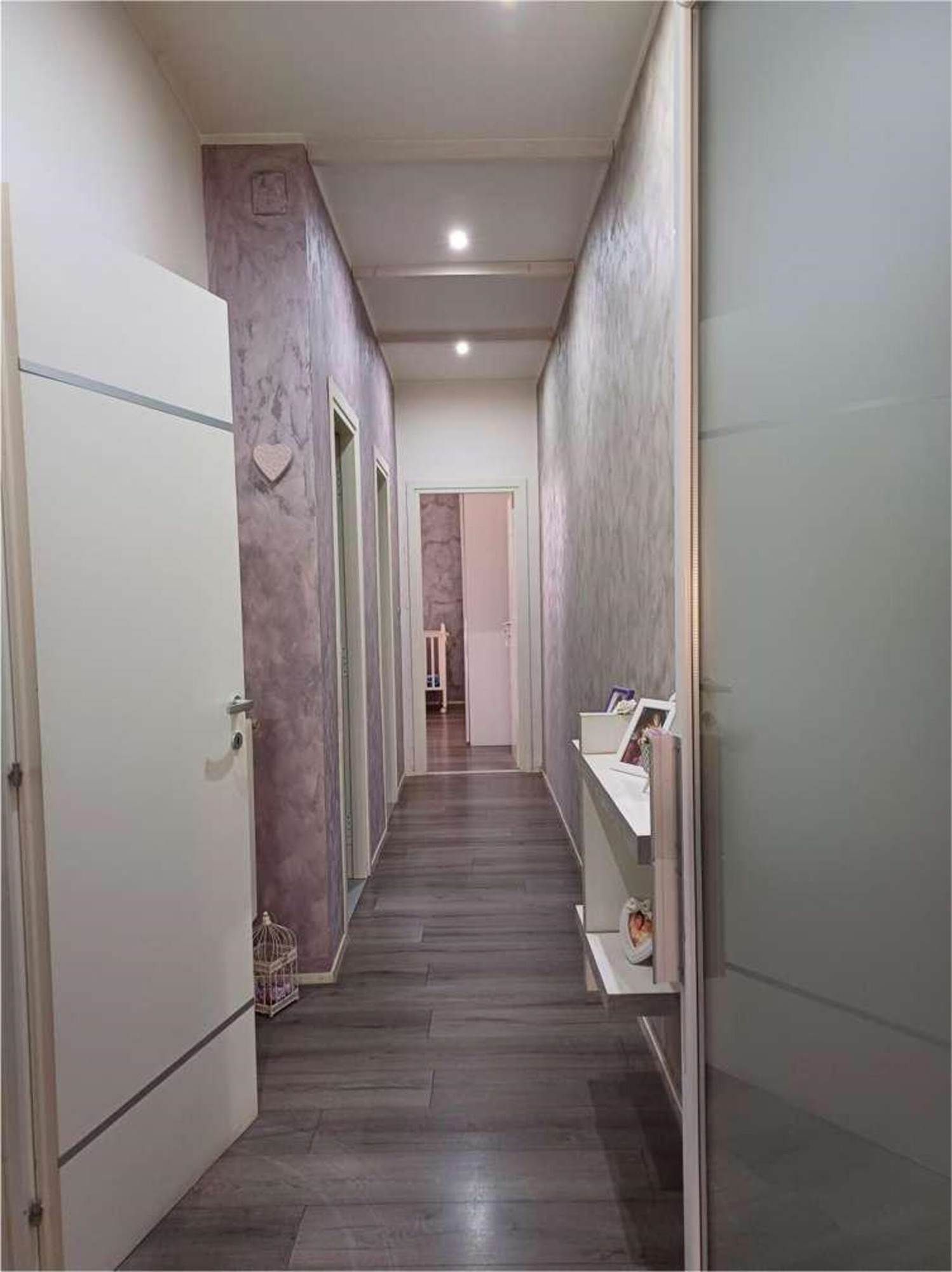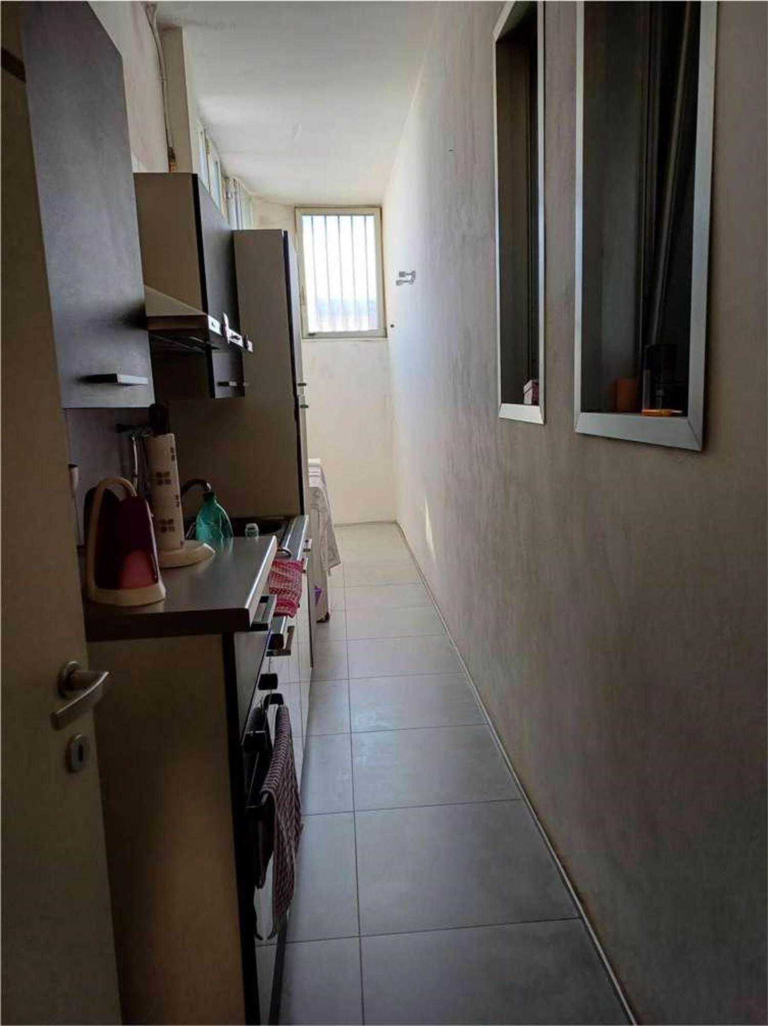 Descrizione sintetica: Appartamento al piano primo composto da un ingresso con un lungo corridoio e due camere, un bagno ed un soggiorno-pranzo con affaccio da balcone di mq 4,26 su prospetto principale. La zona cottura, collegata al soggiorno, è ricavata su di una veranda chiusa con finestre alte. Mediante altre due rampe di scale, si accede al lastrico solare di mq 54,80 dove vi è un vano tecnico nel quale è allocata la caldaia.