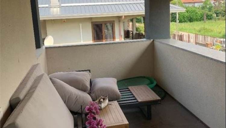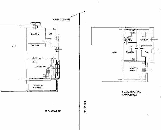 Descrizione sintetica: Appartamento disposto su due livelli, piano primo e piano secondo composto da soggiorno con angolo cottura, camera e bagno al primo piano, con ampio terrazzo coperto accessibile dal soggiorno e un balcone; al piano secondo/sottotetto due camere, cabina armadio, disimpegno e bagno. Terrazzo al piano primo di 19,94 mq. Balcone al piano primo di 1,92 mq.