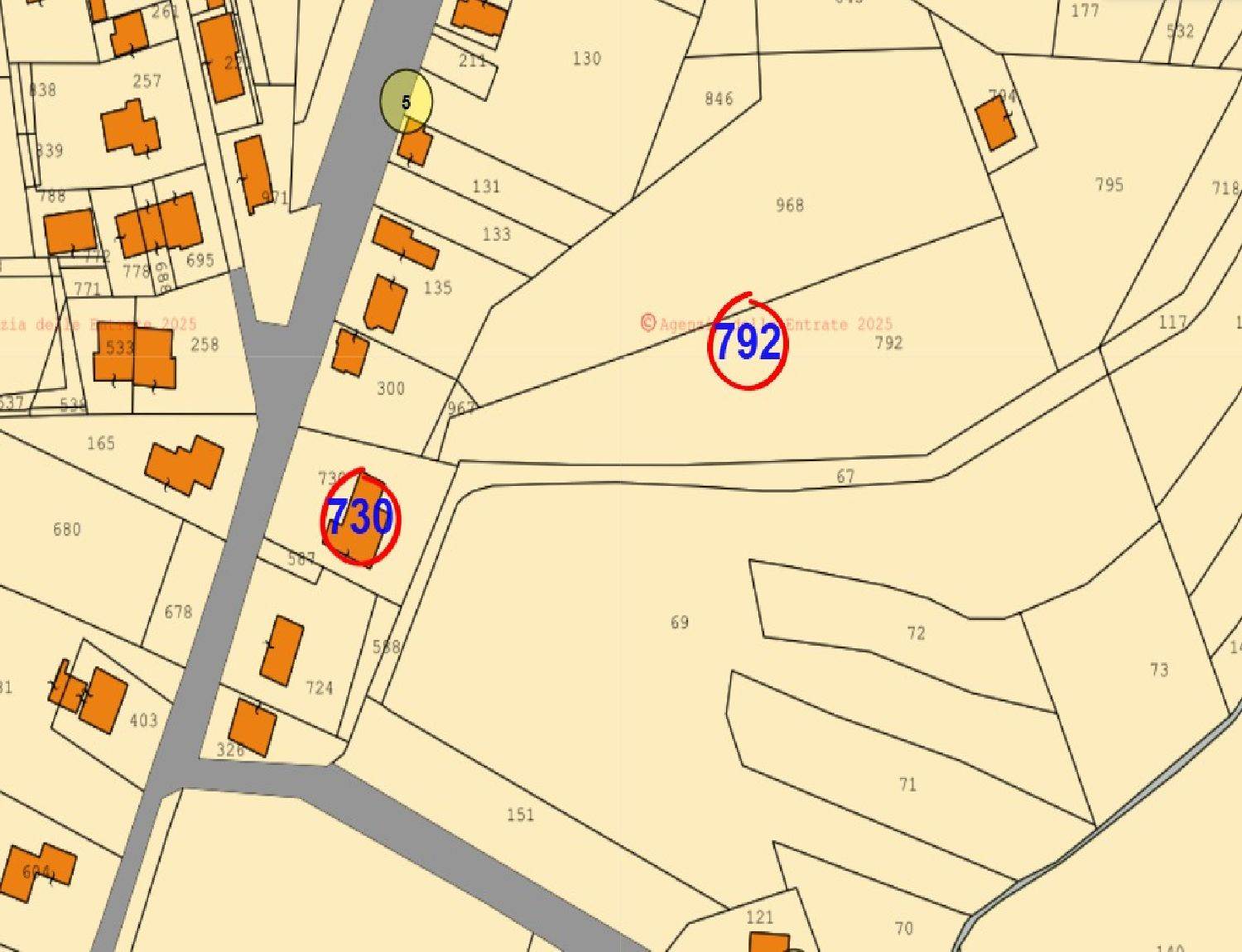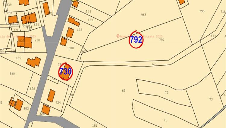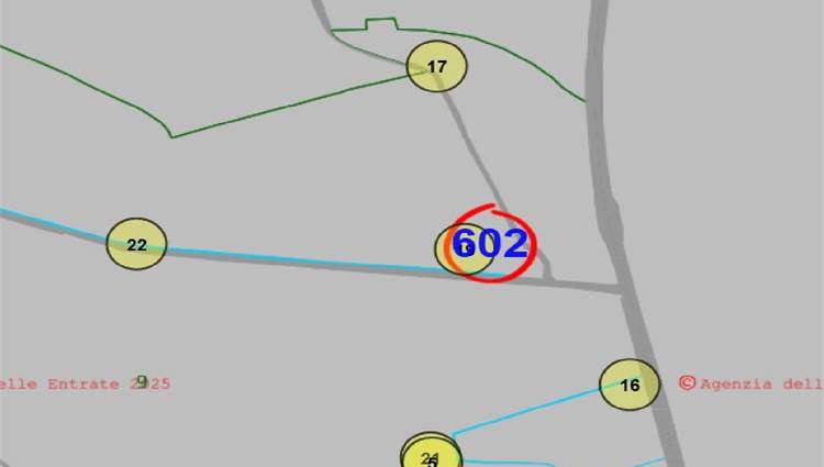 È compresa un’area scoperta esclusiva di mq. 1.431 catastali e un appezzamento di terreno agricolo di mq. 6.362 catastali.