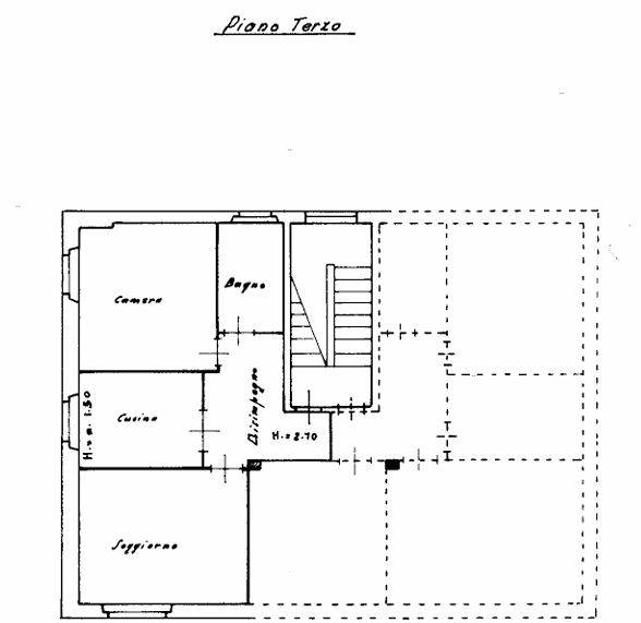 Descrizione sintetica: Appartamento al piano terzo composto da soggiorno, cucina, camera e bagno.