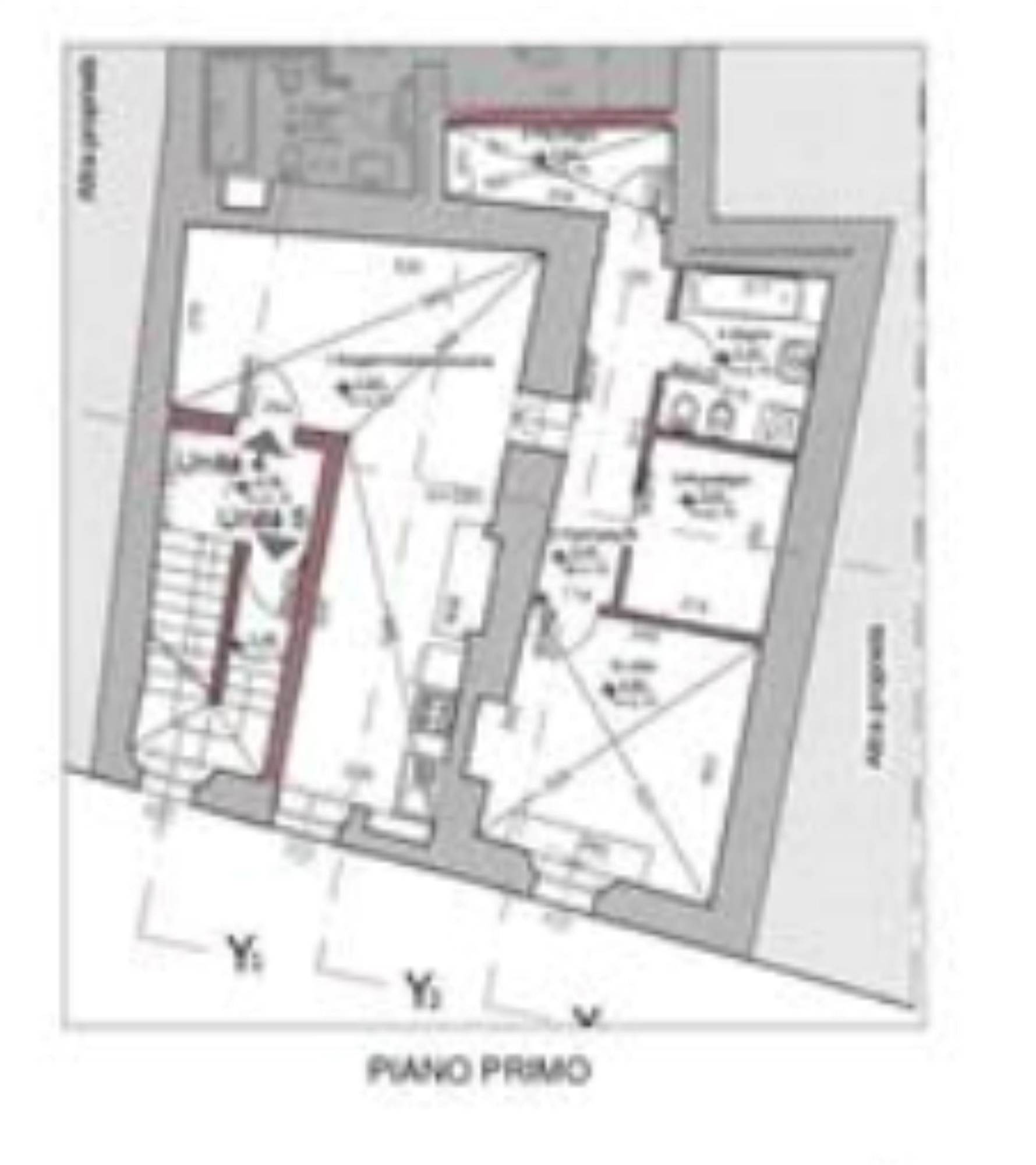 Descrizione sintetica: Appartamento al primo piano composto zona giorno con angolo cottura, da questa si accede alla zona notte composta da un corridoio, una camera di circa 13,5 mq(singola), un ripostiglio di circa mq 5,6 privo di finestre, un bagno anch’esso privo di finestre esterne, e un secondo ripostiglio di circa mq.4,00.