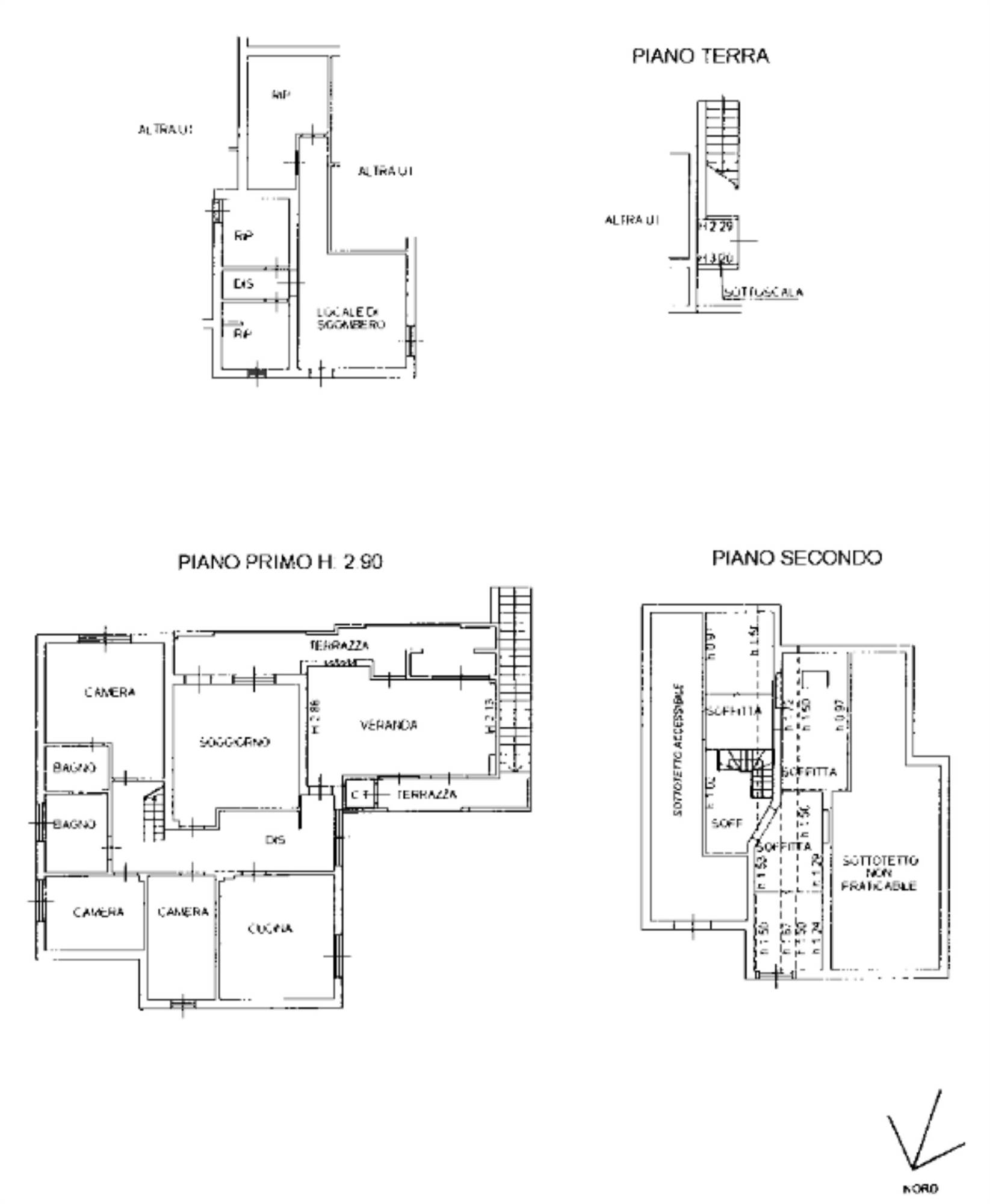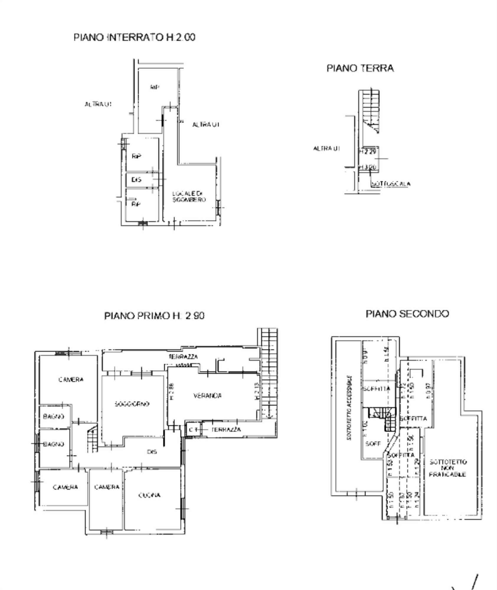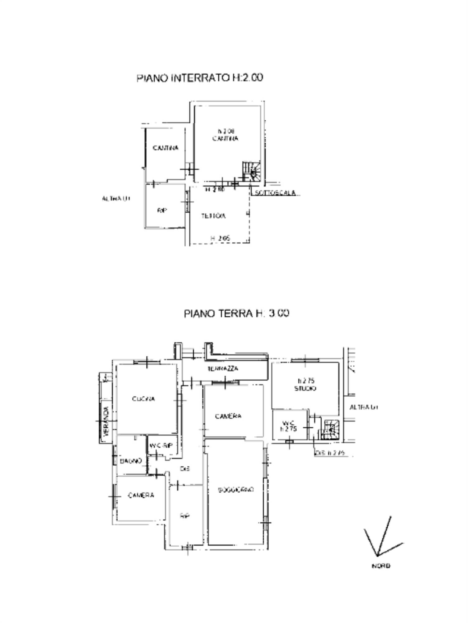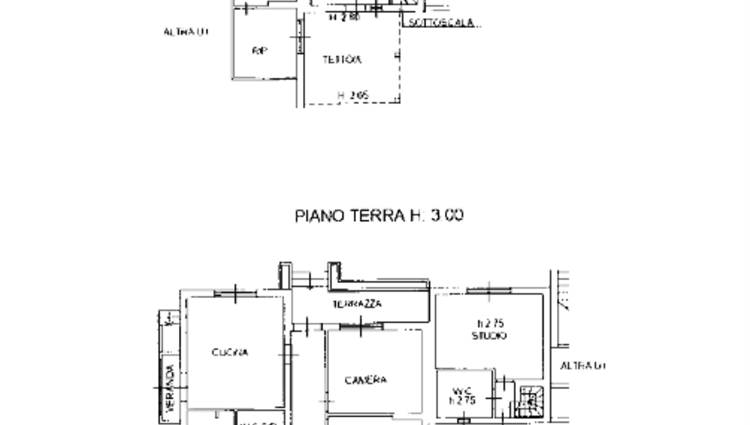 Due appartamenti costituiti entrambi da un piano seminterrato con vani accessori. Una abitazione è disposta al piano terra con salotto, cucina, due camere da letto ed un bagno l'altra al primo piano con salotto, cucina, tre camere da letto e due bagni, entrambe con soffitta e posto auto scoperto.