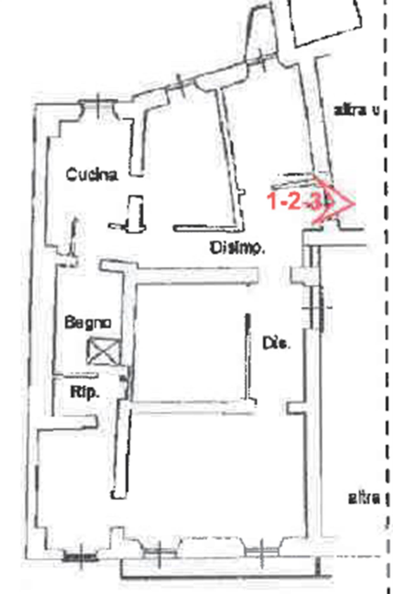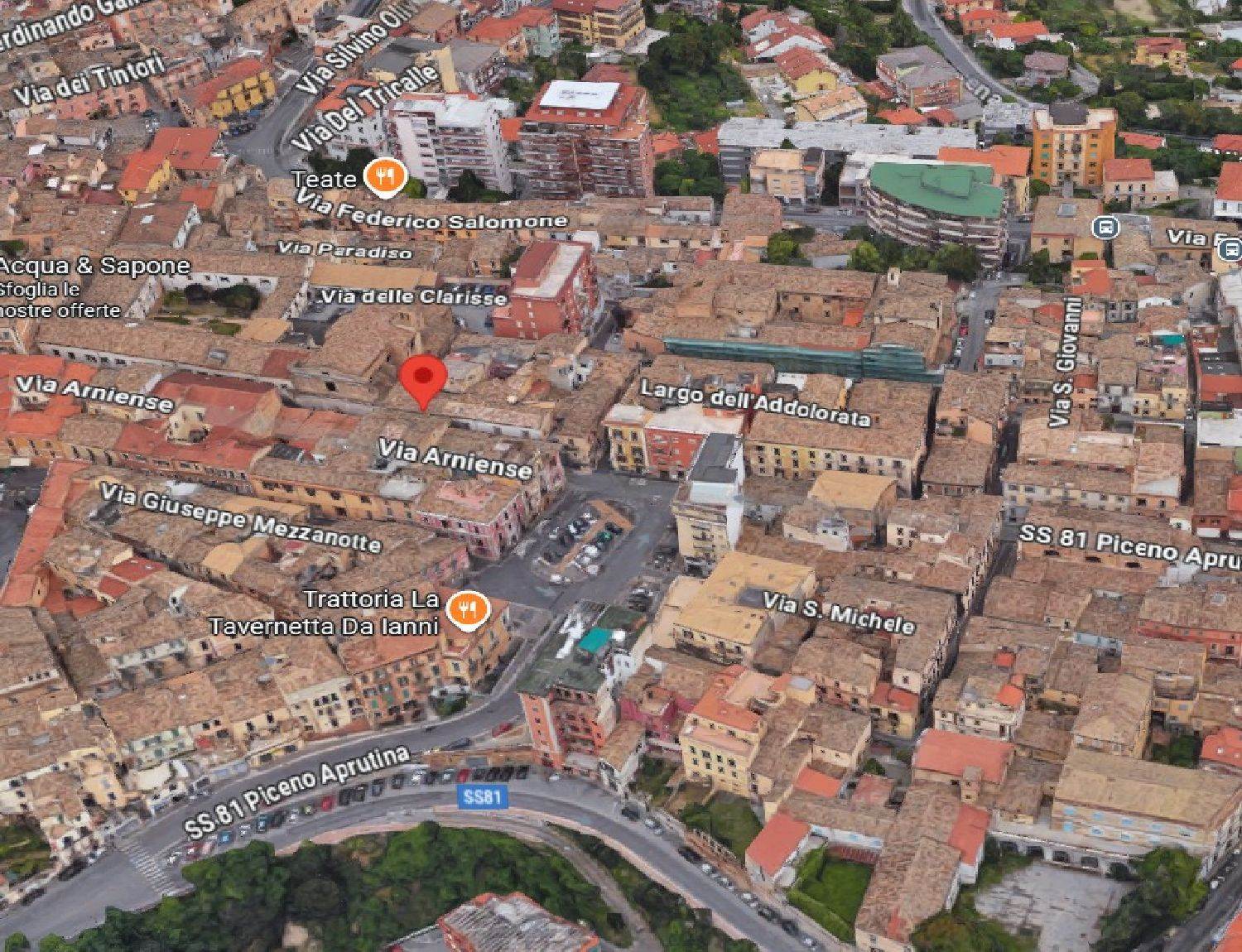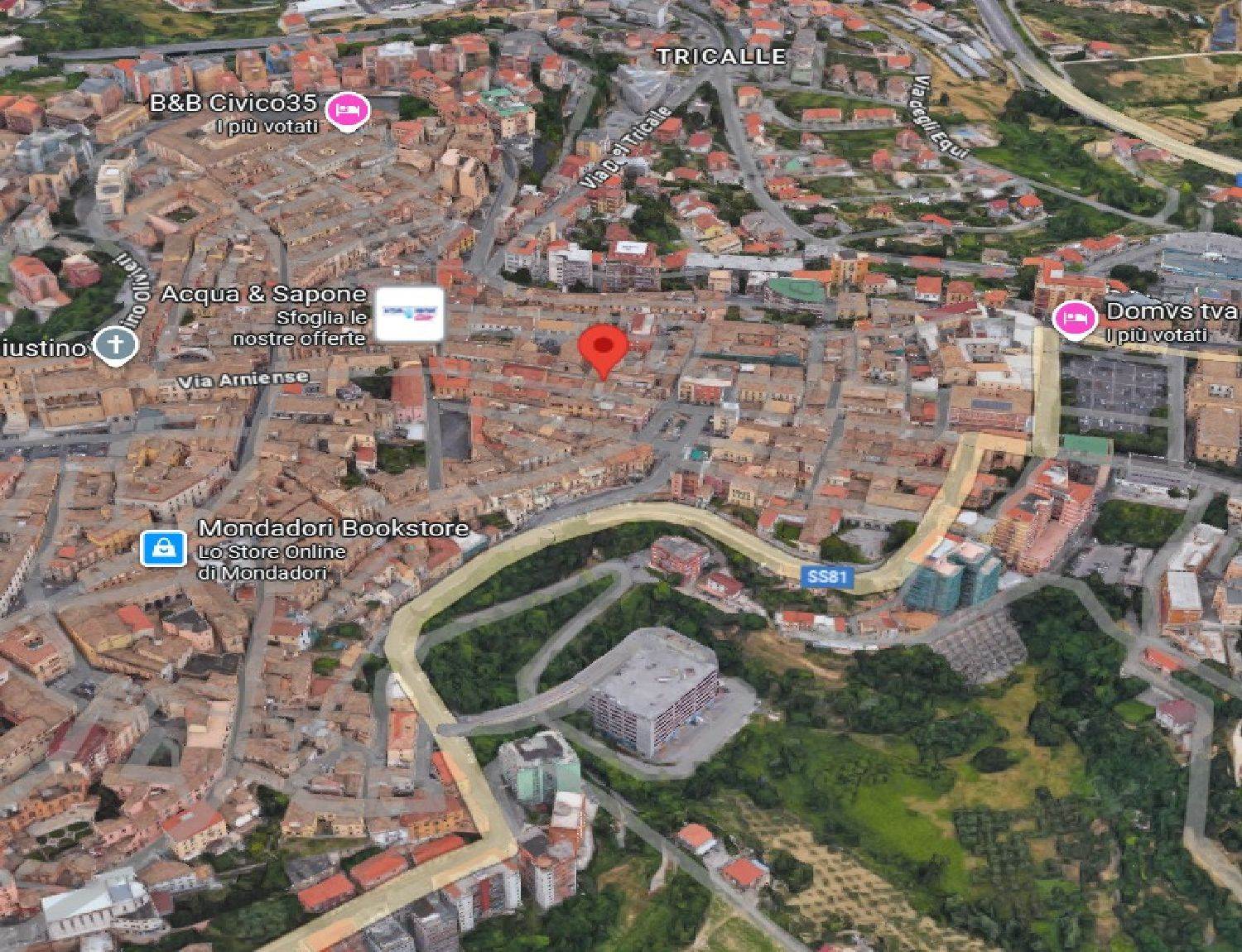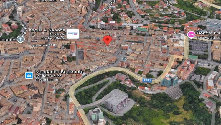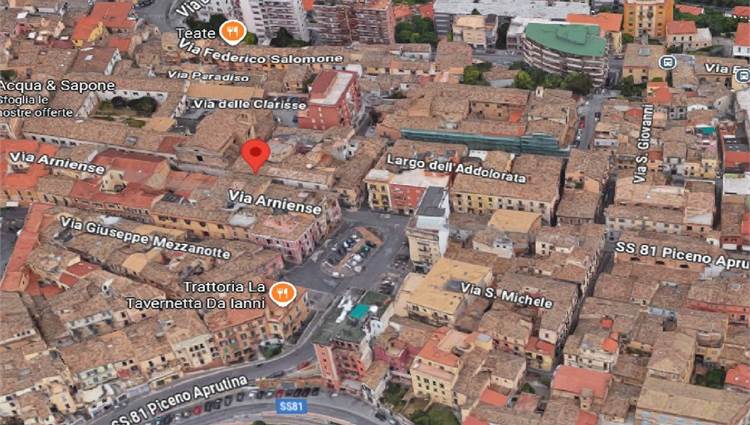 Descrizione sintetica: L’immobile, ad uso residenziale, è costituito da un appartamento di mq 140,00 con locale magazzino di mq 36,00 ricompresi in una più ampia consistenza inerente a una piccola palazzina della “schiera storica” del lato destro (a salire) di Via Arniense a prevalente destinazione residenziale. L’alloggio al piano secondo consta di cinque vani disimpegnati da due corridoi, oltre cucina, bagno e ripostiglio e balcone di mq 5,60,