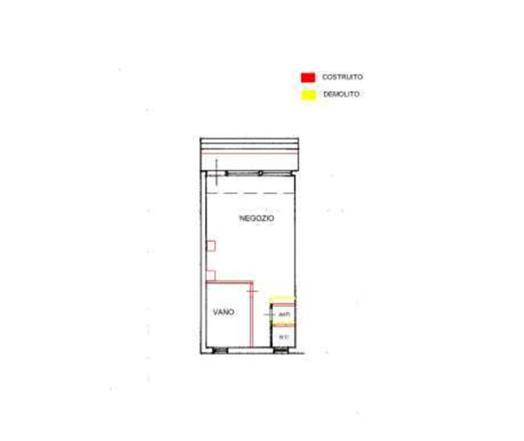 Descrizione sintetica: Negozio con ingresso diretto al piano terra. Suddetto locale commerciale è composto da una stanza unica ove è stato ricavato un vano con pareti in cartongesso ed un anti-bagno e bagno.