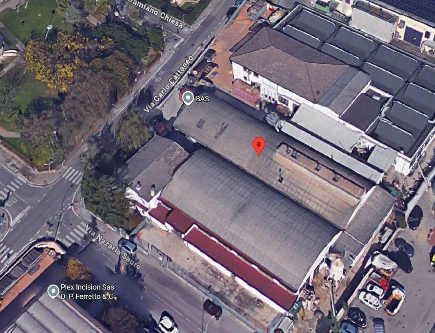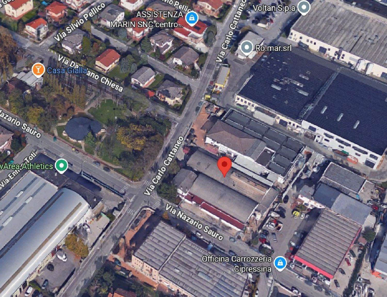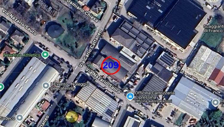 Descrizione sintetica: Edificio produttivo, allo stato inagibile. L’edificio è destinato a laboratorio con uffici e servizi per i dipendenti concentrati . Immobile libero e vuoto , risulta gravemente danneggiato da eventi atmosferici e da abbondanti ingressi d'acqua. L'immobile presenta doppio accesso da Via Cattaneo e da Via Sauro.