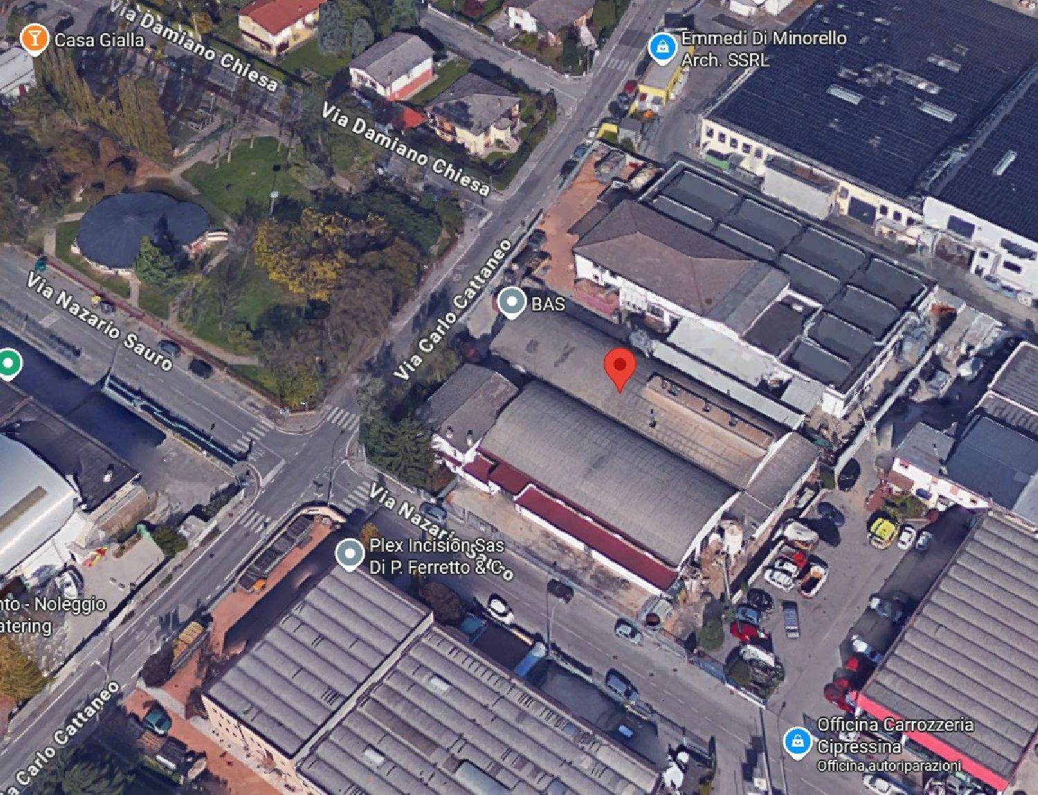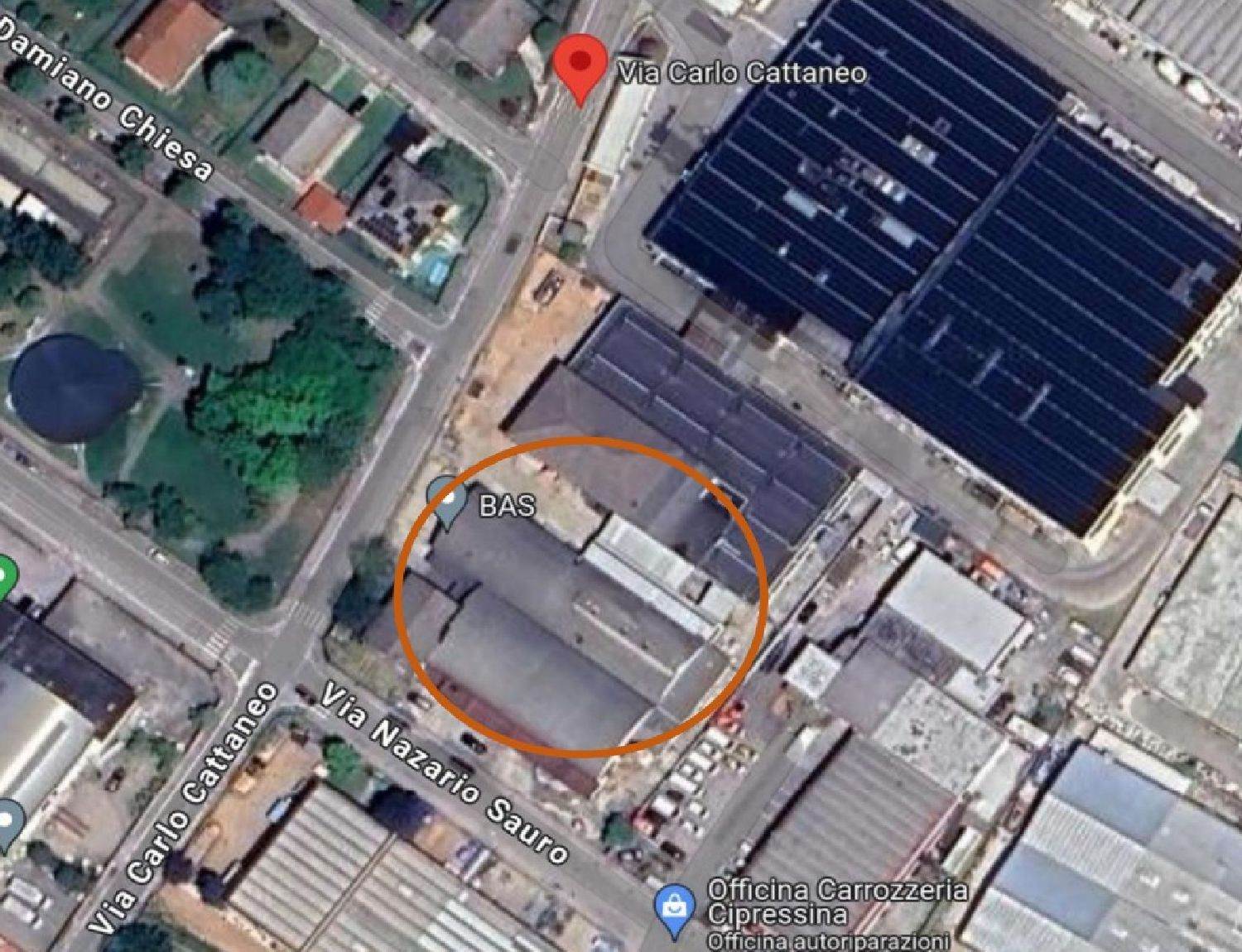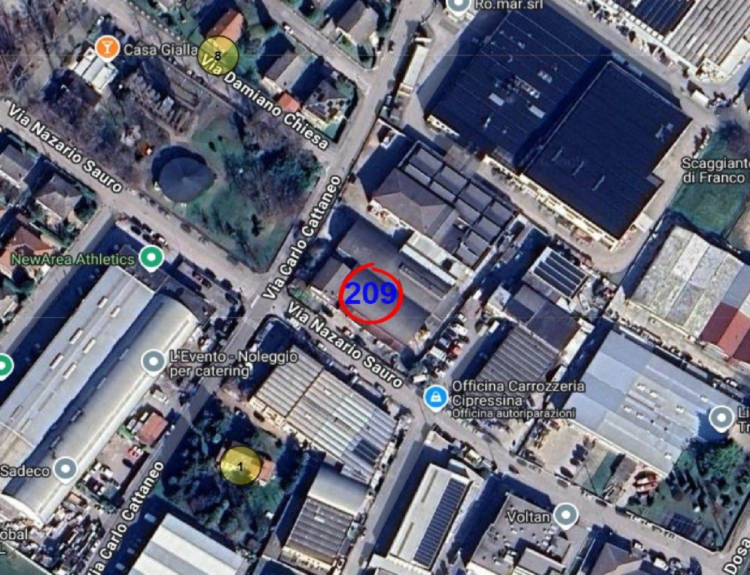 Descrizione sintetica: Edificio produttivo, allo stato inagibile. L’edificio è destinato a laboratorio con uffici e servizi per i dipendenti concentrati . Immobile libero e vuoto , risulta gravemente danneggiato da eventi atmosferici e da abbondanti ingressi d'acqua. L'immobile presenta doppio accesso da Via Cattaneo e da Via Sauro.