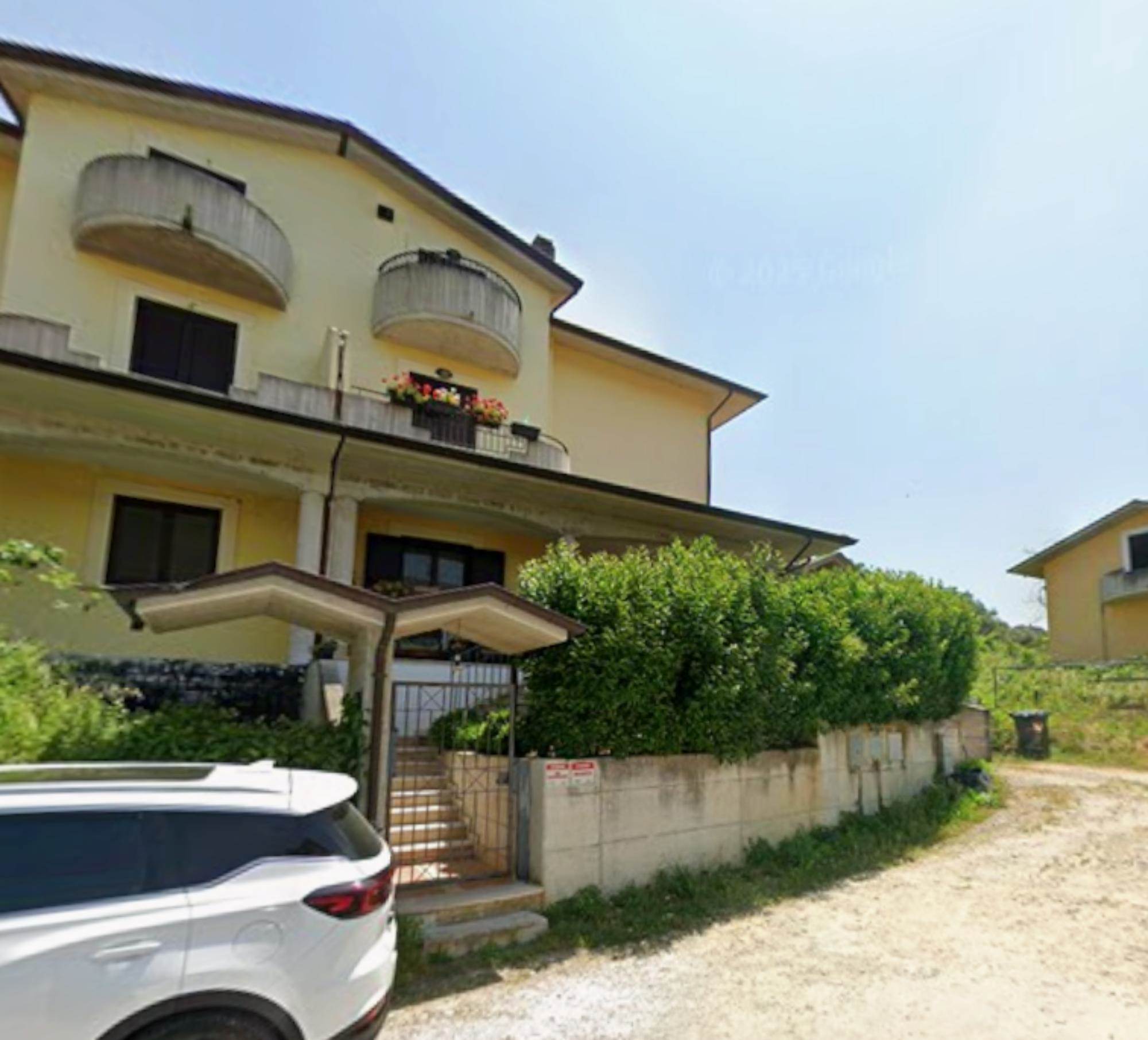 Descrizione sintetica: Appartamento a piano terra composto da ingresso-soggiorno, cucina, piccolo ripostiglio, disimpegno, un bagno, oltre a mq. 22,52 di porticato, mq. 52,18 di terrazza di copertura del box autorimessa e marciapiedi ed a circa mq. 97,00 di area a verde privato, a piano primo da disimpegno, tre camere da letto, un bagno ed un piccolo ripostiglio, oltre a mq. 13,42 di balconi, a piano secondo (sottotetto) da due locali di sgombero di cui uno principale ed uno secondario, una lavanderia WC ed un piccolo ripostiglio, il tutto per una superficie lorda pari a mq. 76,03, oltre a mq. 4,16 di balconi a piano interrato da taverna, disimpegno, locali cantina e piccolo ripostiglio, n.1 W.C.