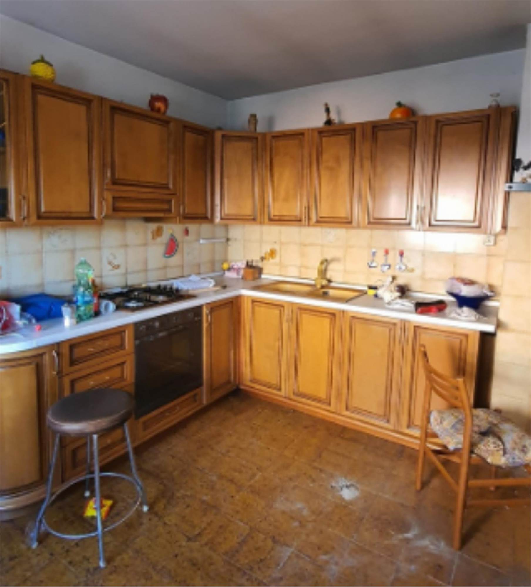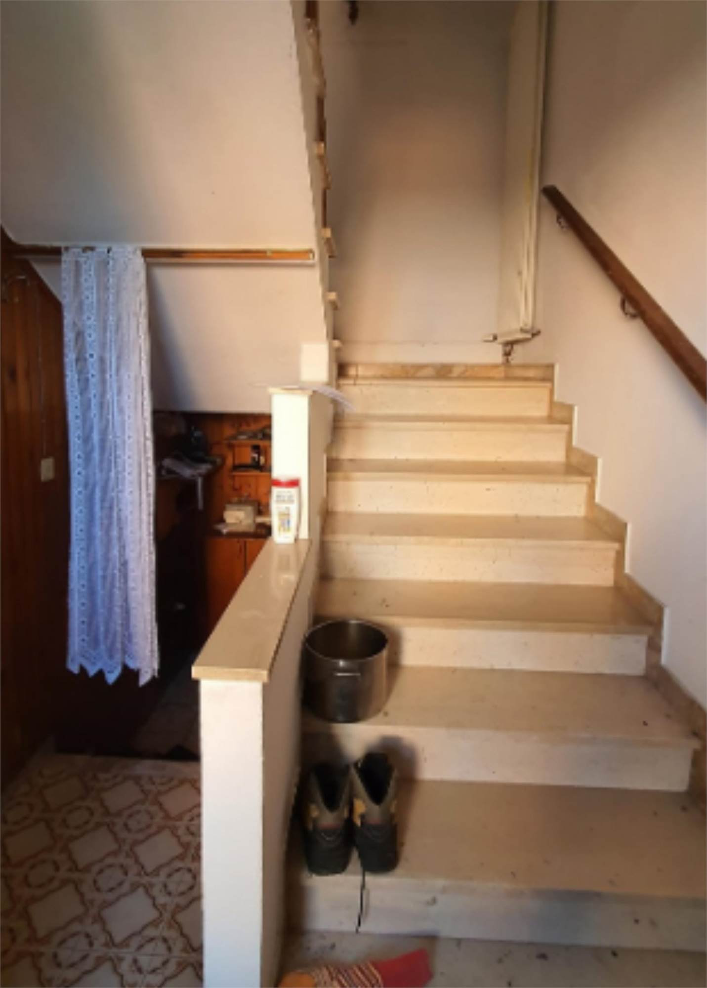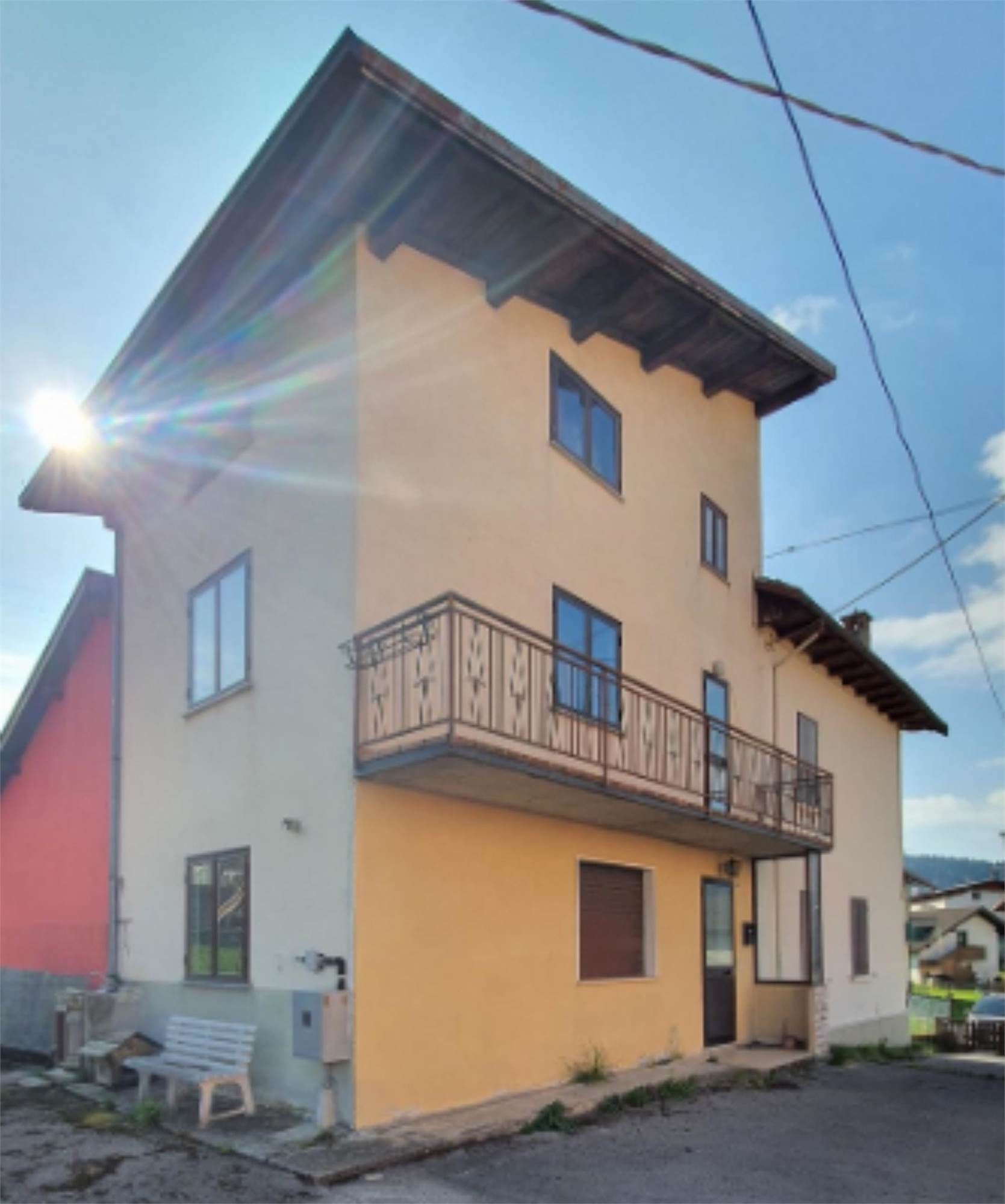Abitazione su tre livelli fuori terra compreso il sottotetto. L'ingresso è centrale con scala che distribuisce i vari livelli. Sui due lati dell'ingresso al piano terra ci sono la cucina e il soggiorno, mentre al piano primo ci sono due camere e un bagno. Al piano secondo sottotetto c'è la soffitta. Scoperto a giardino.