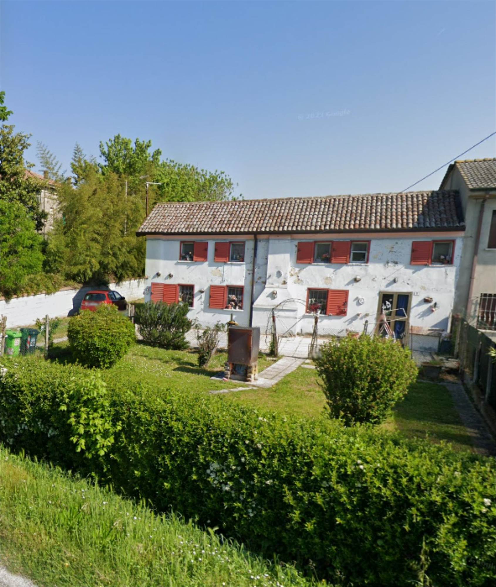 Descrizione sintetica: abitazione elevata ai piani terra e primo, posta in aderenza ad altro edificio con area di pertinenza. Box auto in lamiera in corpo staccato di mq 13,00. L'abitazione si compone di soggiorno, cucina, ulteriori tre vani e servizio.