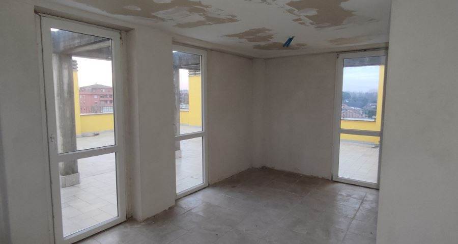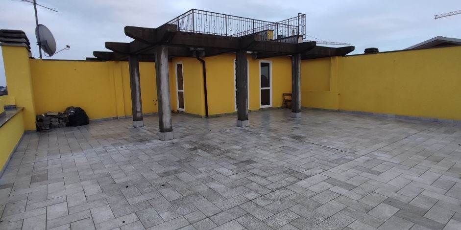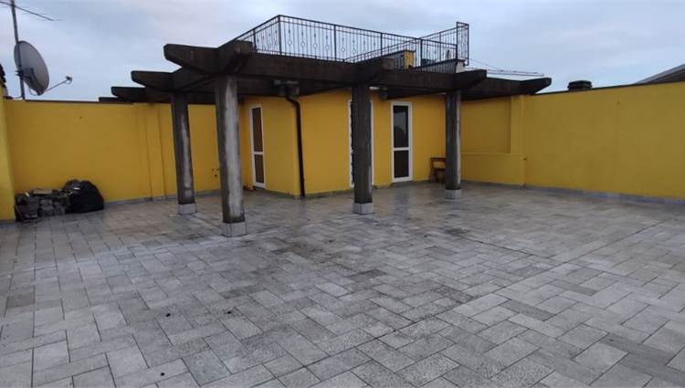 Descrizione sintetica: Appartamento al piano secondo, terzo e quarto composto da soggiorno, cucina, tre camere e due bagni oltre a balcone e terrazza. Cantina di mq 4,87 e box auto doppio di mq 45,27.