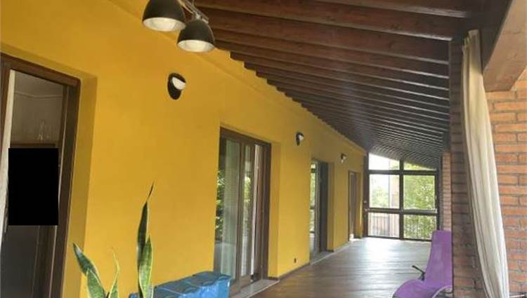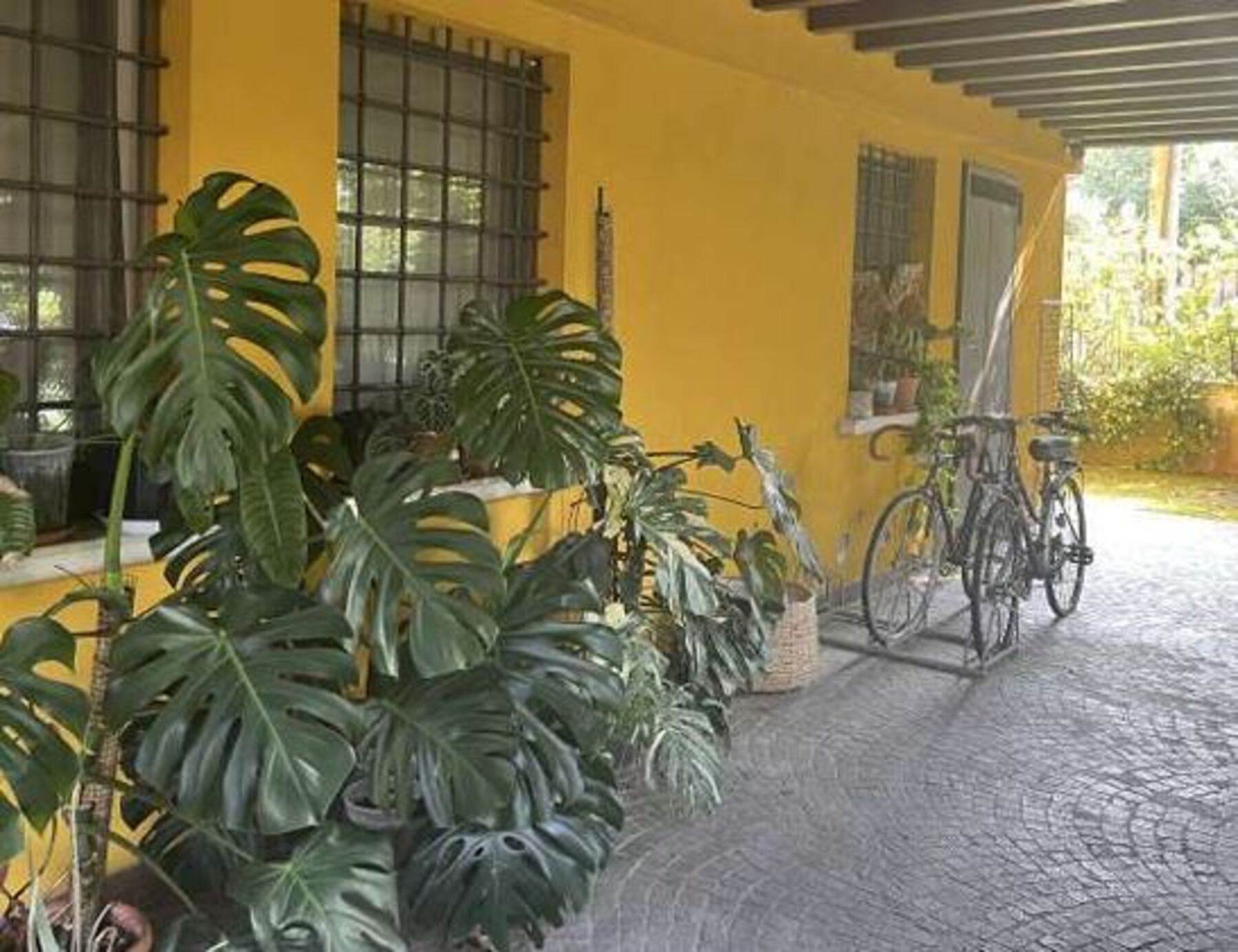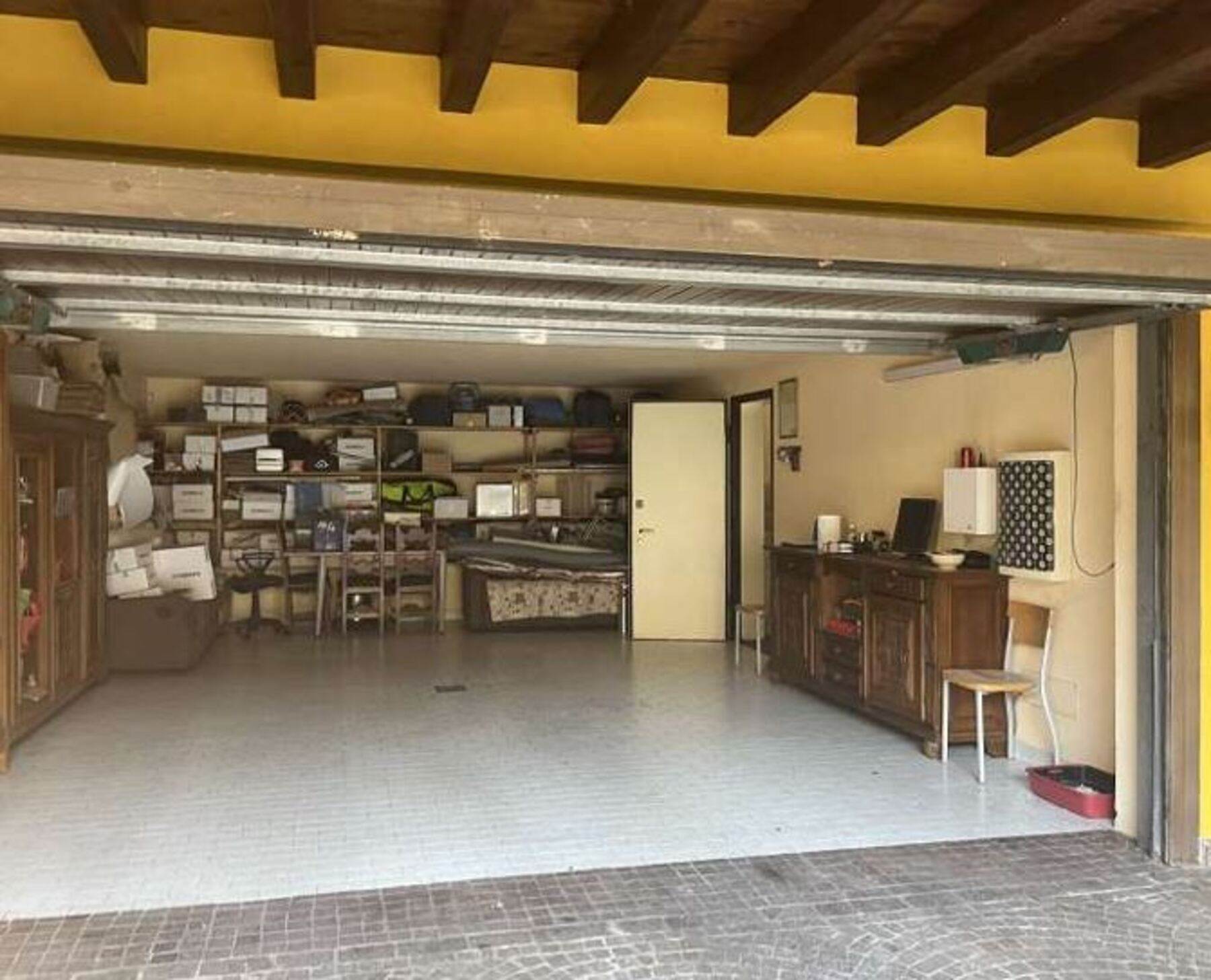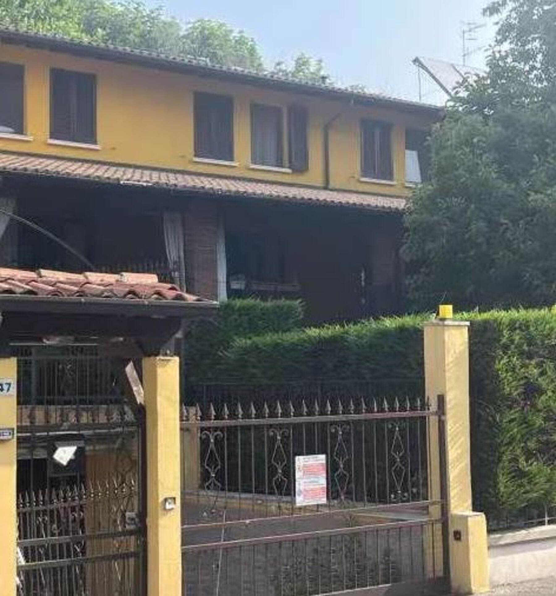 Descrizione sintetica: villetta a schiera su due piani fuori terra con autorimessa di mq 53,50, portici di mq 129,22 e area esclusiva di mq 270,00. L’immobile è composto da piano terra con ampio portico, ampia zona ingresso, giardino, autorimessa e locali accessori (locale caldaia, cantina, lavanderia bagno e ripostiglio con caminetto). Un elegante vano scala a pianta semicircolare conduce ai piani. Il piano primo comprende una ampia loggia, disimpegno e soggiorno oltre a cucina, ripostiglio e bagno con antibagno. Il piano secondo è composto da disbrigo che da accesso a camera principale con guardaroba e bagno, dal disbrigo si accede inoltre ad un corridoio che conduce a tre camere da letto con un bagno.