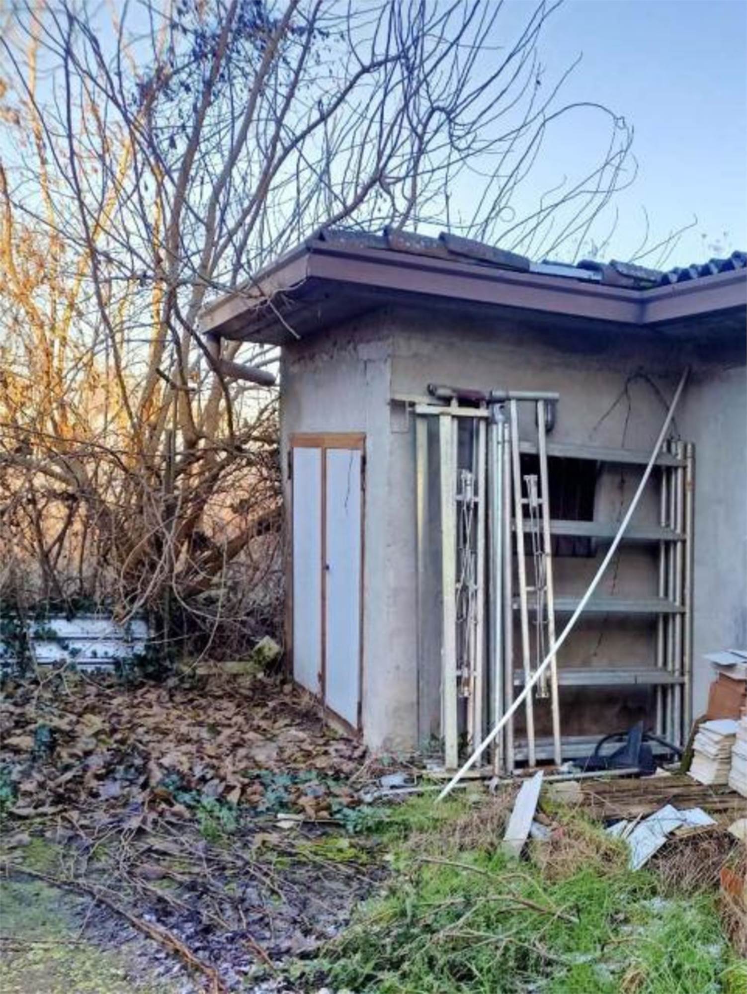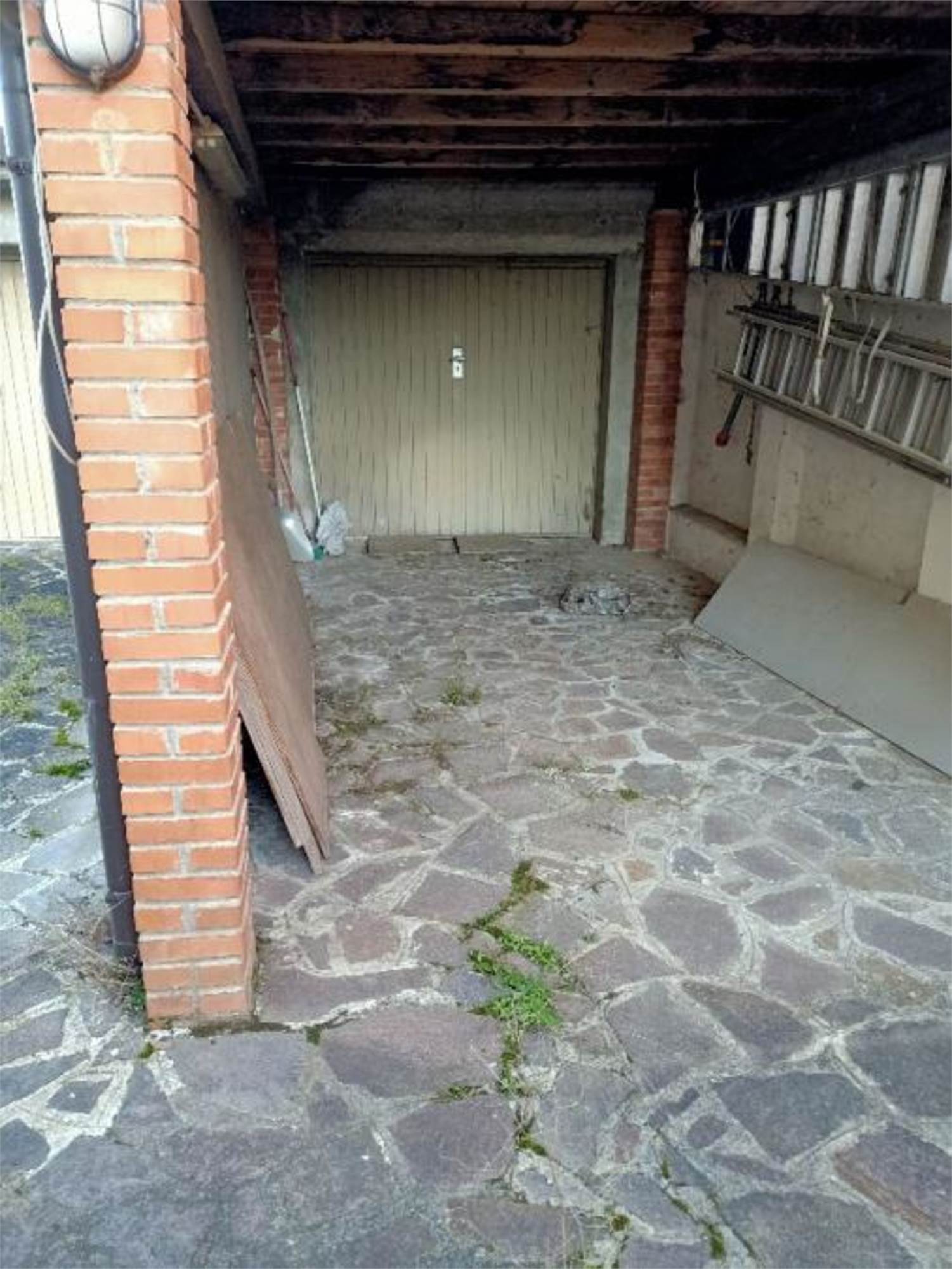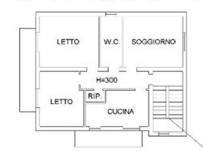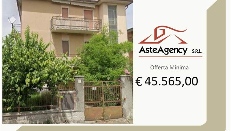 Descrizione sintetica: Appartamento al piano secondo composto da cucina, soggiorno, bagno, disimpegno, due camere da letto, due balconi, con annesse due autorimesse di mq 12,00 e 14,00. Vi è un’area comune composta da area recintata con in parte sistemazione a giardino, vano scala, cantina, W.C. piano terra, locale caldaia, legnaia e porticato