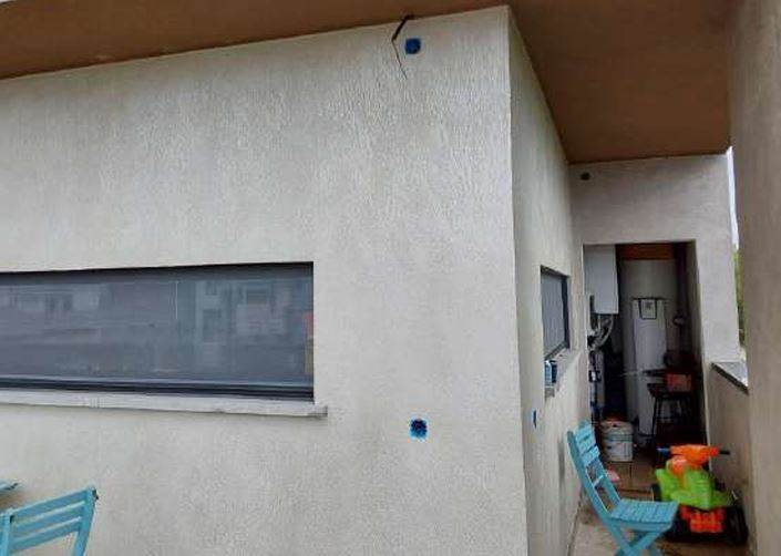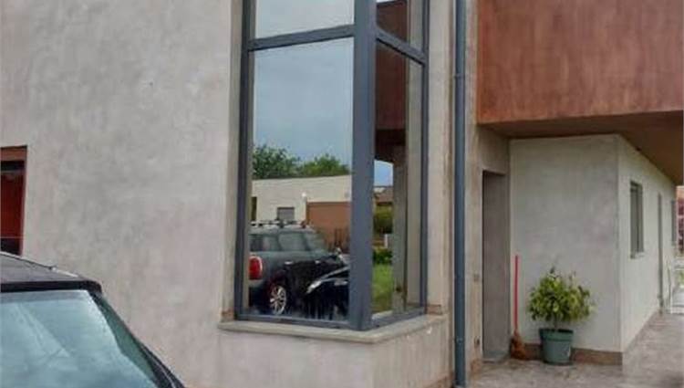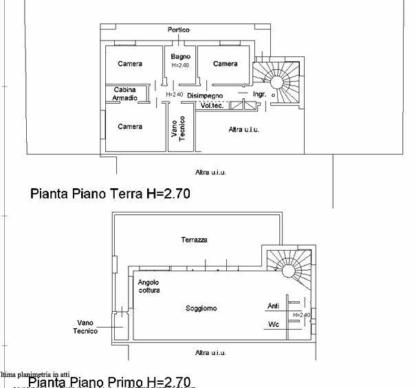 Descrizione sintetica: Unità residenziale cielo-terra oltre ad autorimessa in edificio bifamiliare, cons. 8 vani; formano parte del compendio due porzioni di terreno (una in quota parziale di 1/6) ad uso parcheggio e viabilità pedonale e carrabile. E’ composta da soggiorno con angolo cottura ( openspace), bagno e portico di mq 16,50 al piano terra, da tre camere, di cui una con cabina armadio, bagno, vano tecnico e terrazza al piano primo, box auto al piano terra di mq 26,50.