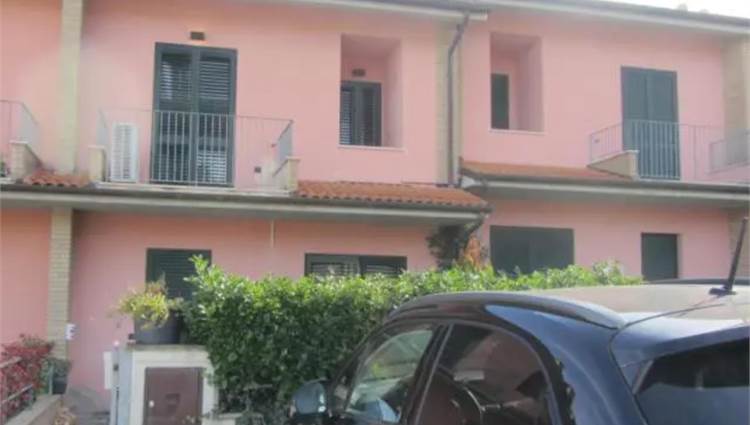 Villetta a schiera centrale con garage e cantina di totale mq 57,00 , disposta ai piano terra, piano primo e seminterrato. Al piano seminterrato l'autorimessa, un vano destinazione cantina e un ripostiglio. Al piano terra soggiorno, cucina e bagno. Al piano primo zona notte composta da disimpegno, tre camere da letto con balcone, un bagno con balcone. La proprietà si completa